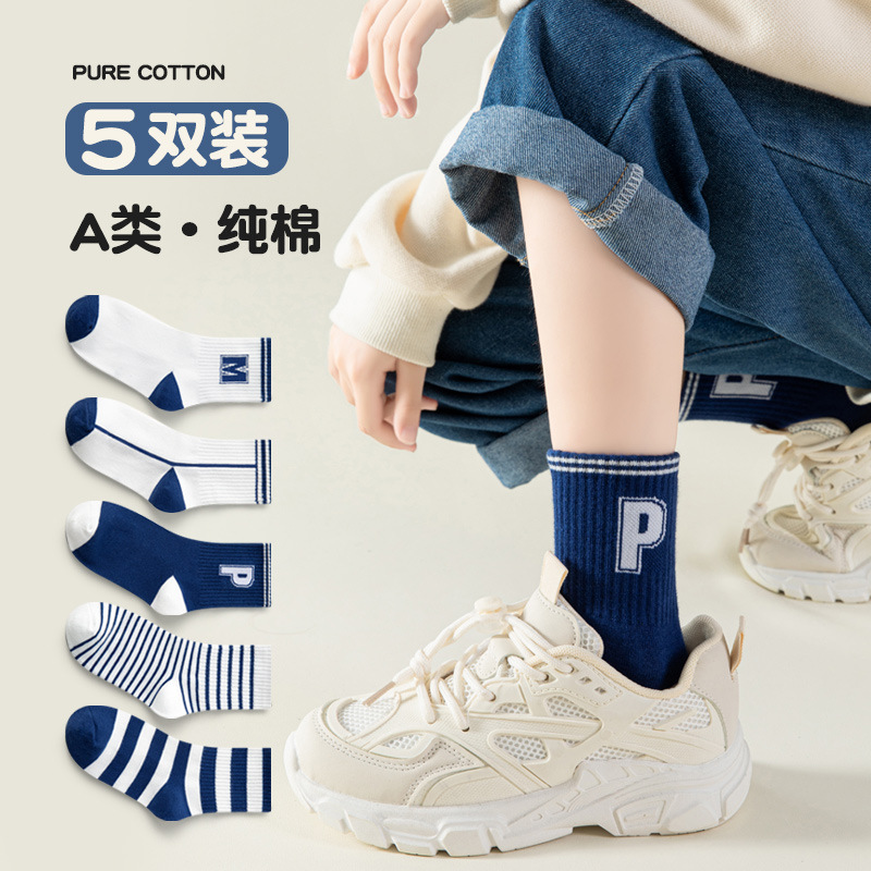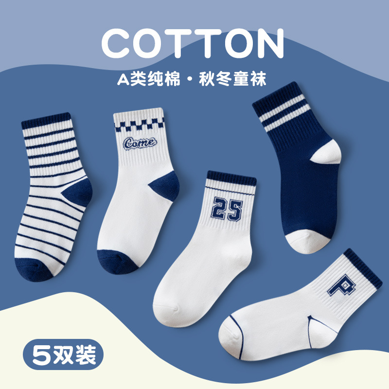 어린이 양말 클래스 A 면 봄 및 가을 스포츠 양말 소년 소녀 학생을위한 한국식 만화 양말 가을 및 겨울 중간 튜브 양말