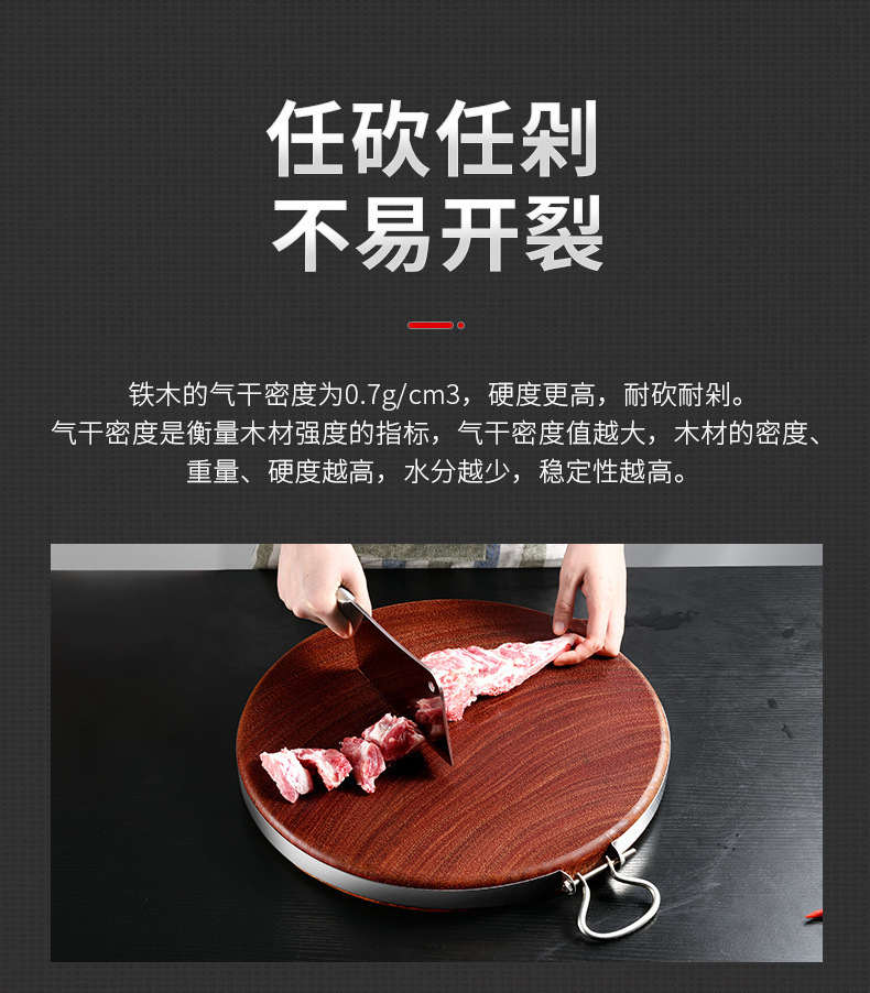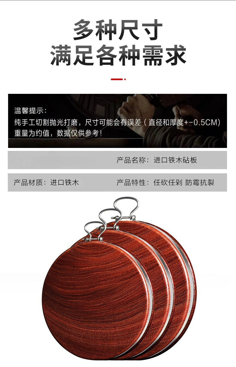 철 나무 도마 도마 단단한 나무 가정용 칼 보드 손잡이 야채 부두 전체 나무 둥근 두꺼운 도마스토어 가기
