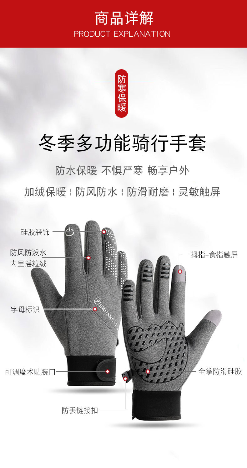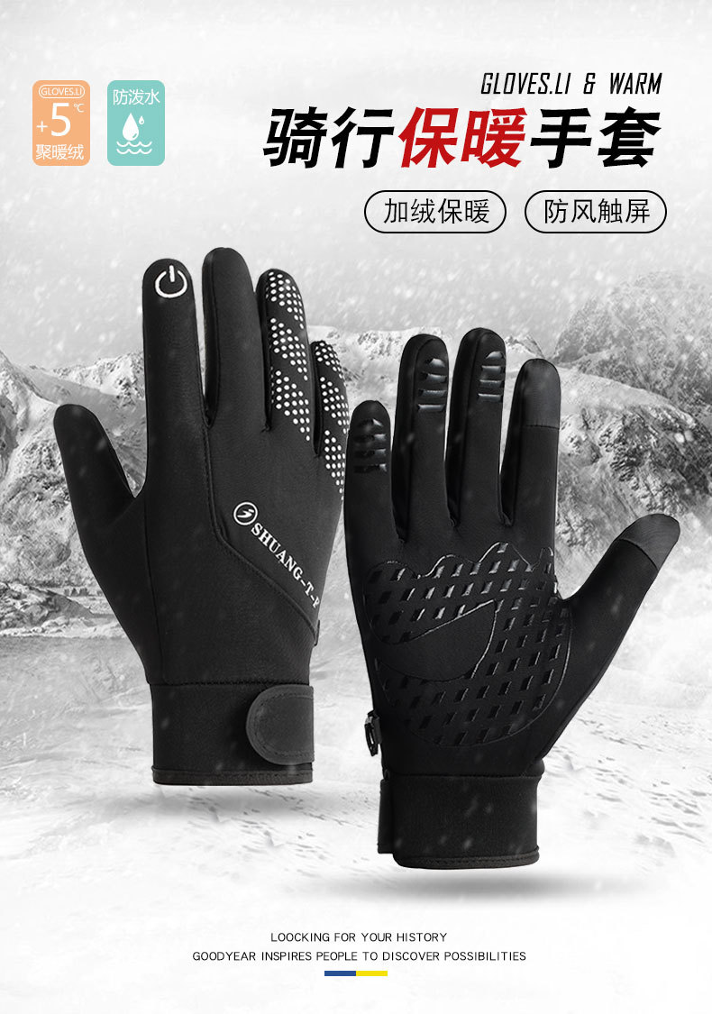 가을 겨울 사이클링 따뜻하고 내한성 및 방풍 장갑 남성용 야외 사이클링 스포츠 운전 터치 스크린 미끄럼 방지 내마모성 내부 벨벳