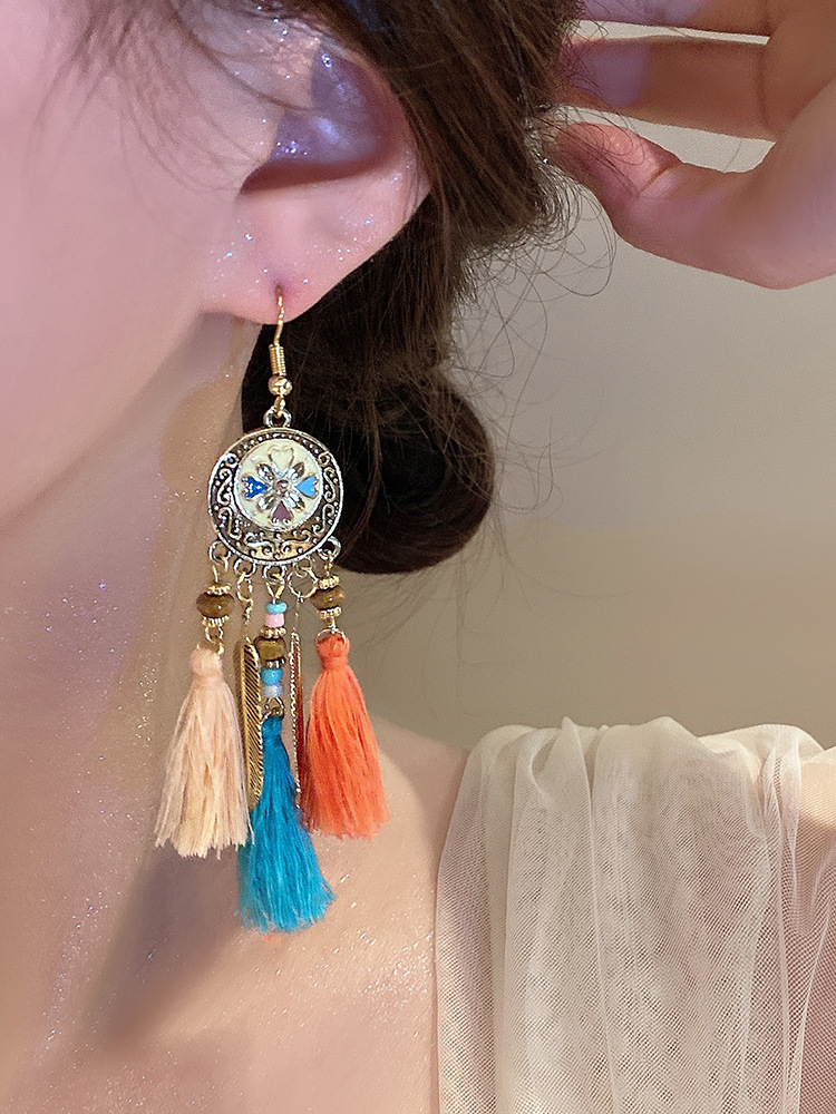 보헤미안 꽃 잎 술 귀걸이 빈티지 틈새 하이 엔드 독특한 올 매치 귀걸이 절묘한 귀걸이스토어 가기