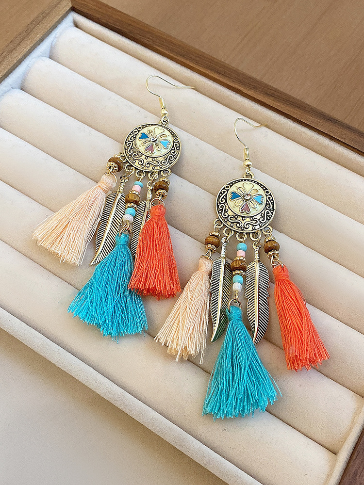 보헤미안 꽃 잎 술 귀걸이 빈티지 틈새 하이 엔드 독특한 올 매치 귀걸이 절묘한 귀걸이
