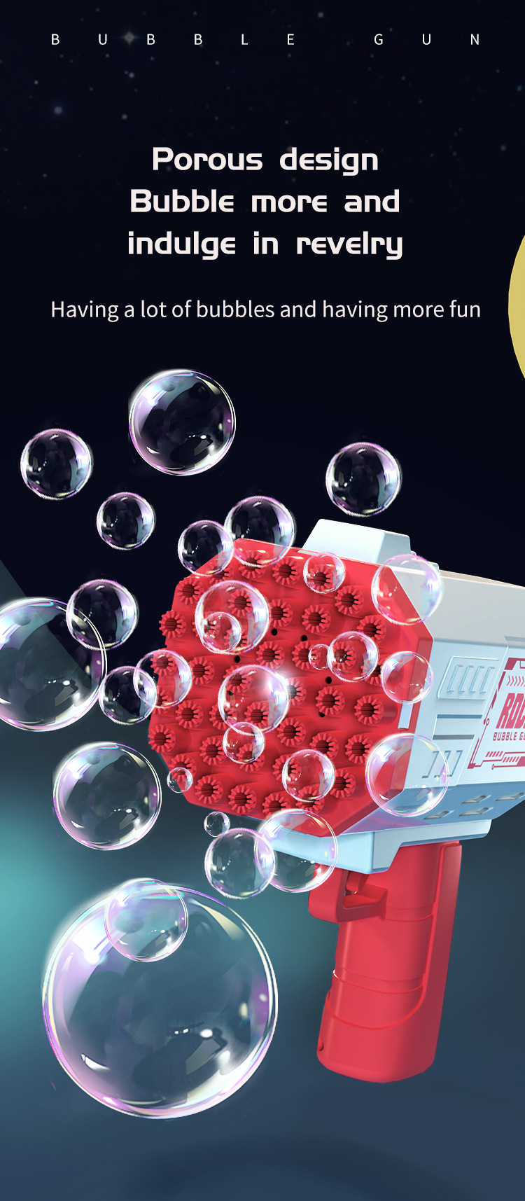 새로운 국경 바주카 40 구멍 거품 총 장난감 공간 개틀 버블 기계 파티 선물 도매