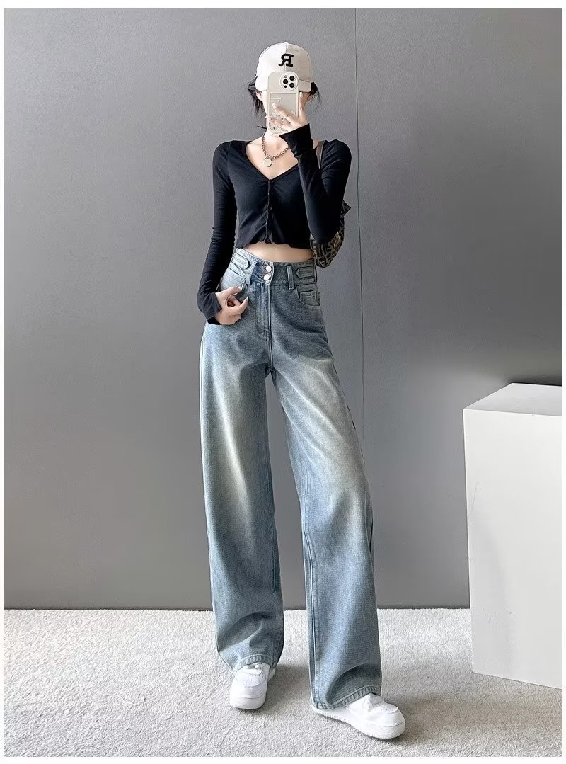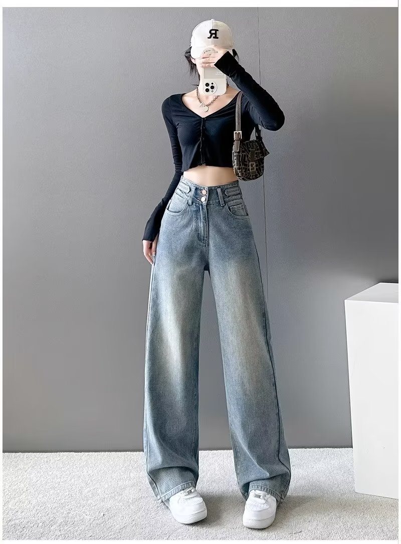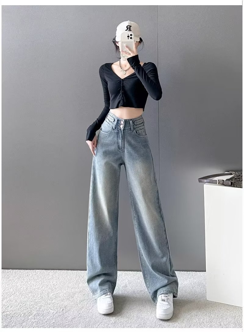 별이 빛나는 하늘 패턴 청바지 여성의 2023 새로운 오래된 유행 높은 허리 넓은 다리 바지 담그고 씻은 작은 바지스토어 가기