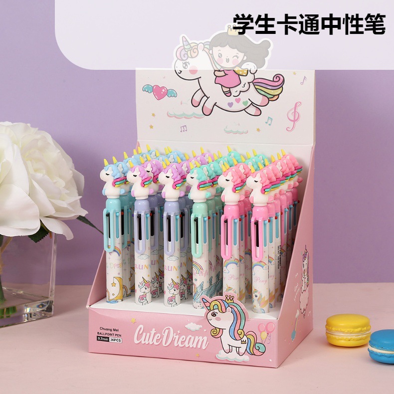 만화 유니콘 스타일 펜 6 컬러 프레스 볼펜 멀티 컬러 중간 오일 펜 도매 학생 크리에이티브 핸드 계정 펜