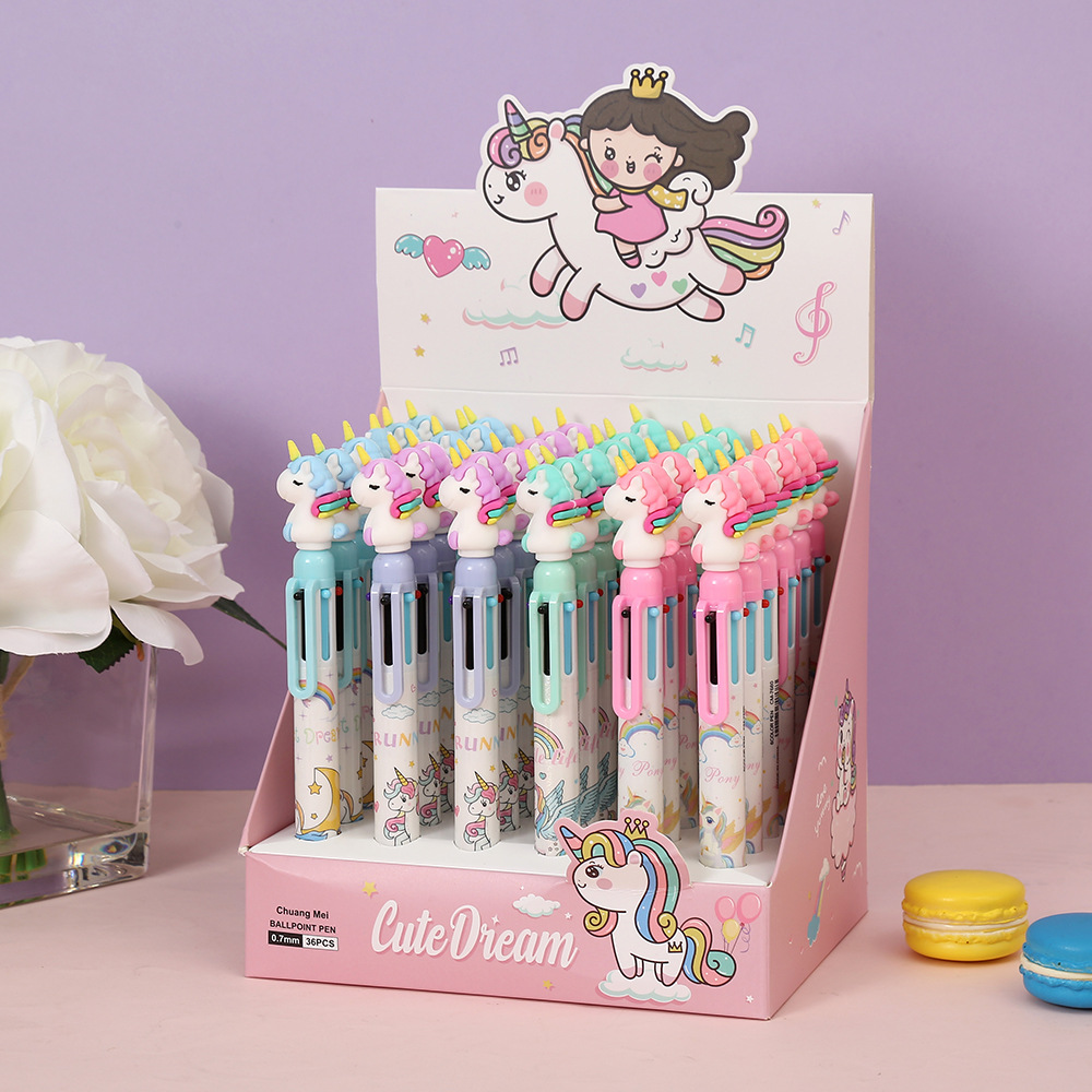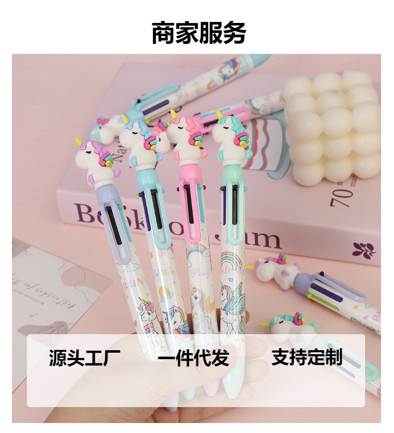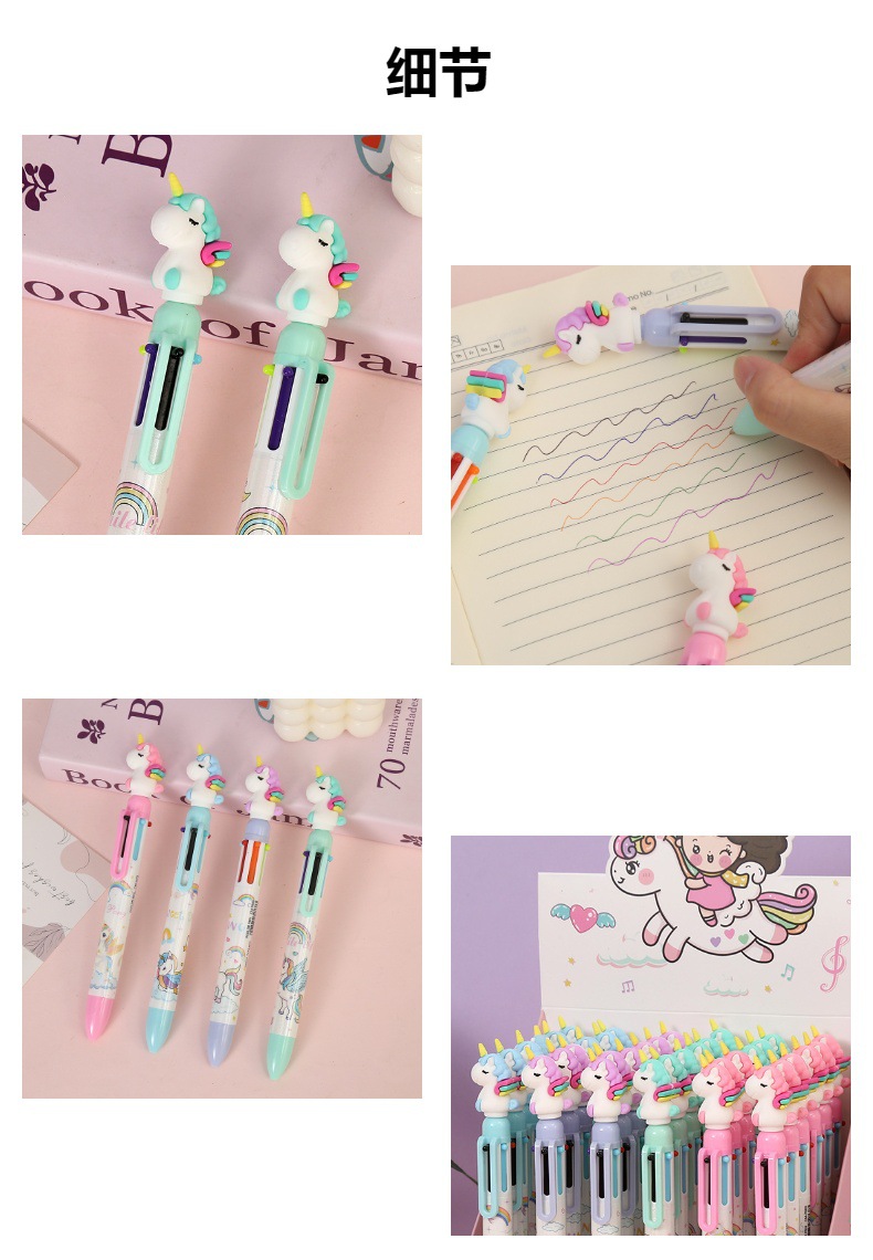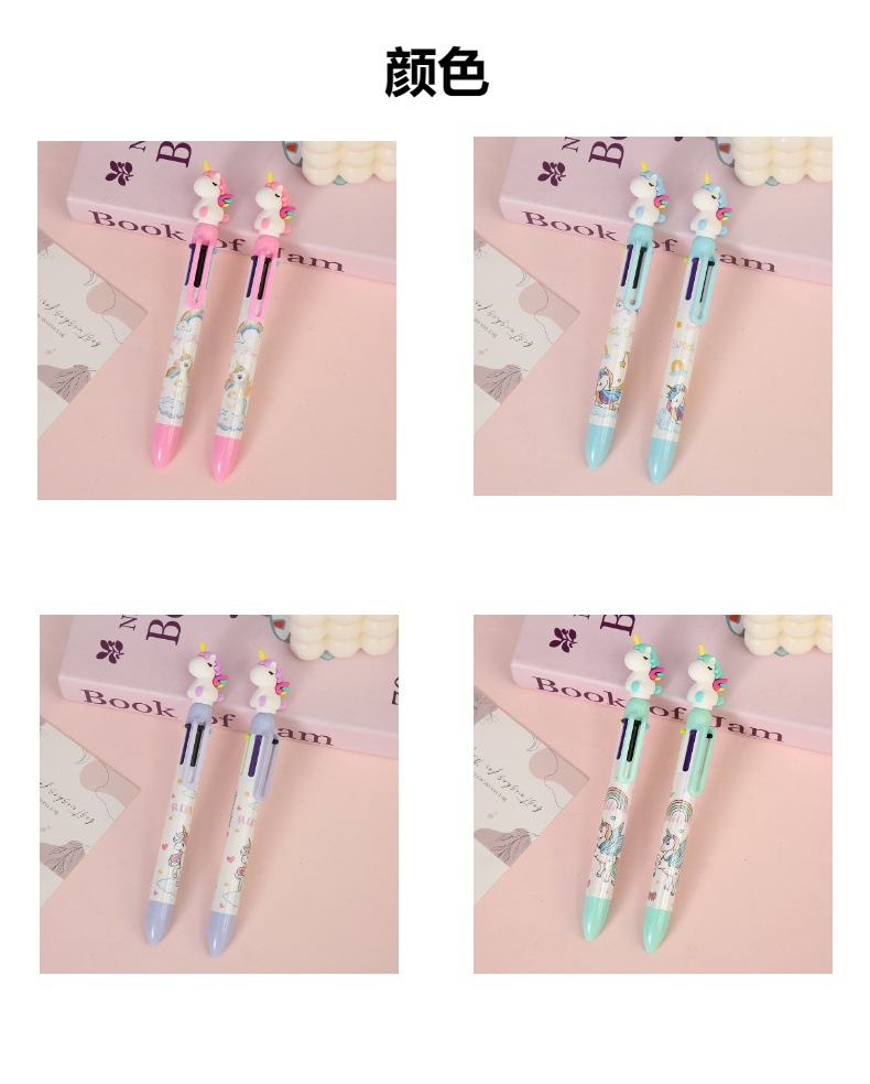 만화 유니콘 스타일 펜 6 컬러 프레스 볼펜 멀티 컬러 중간 오일 펜 도매 학생 크리에이티브 핸드 계정 펜스토어 가기
