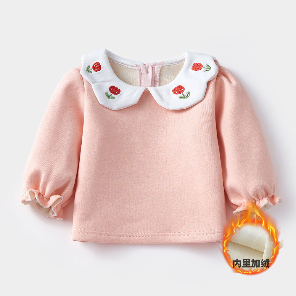 2024 아기 소녀 기모 베이스 셔츠 가을과 겨울 인형 칼라 셔츠 3887 내부 착용 어린이 외부 따뜻한 탑 착용