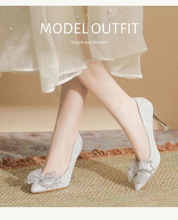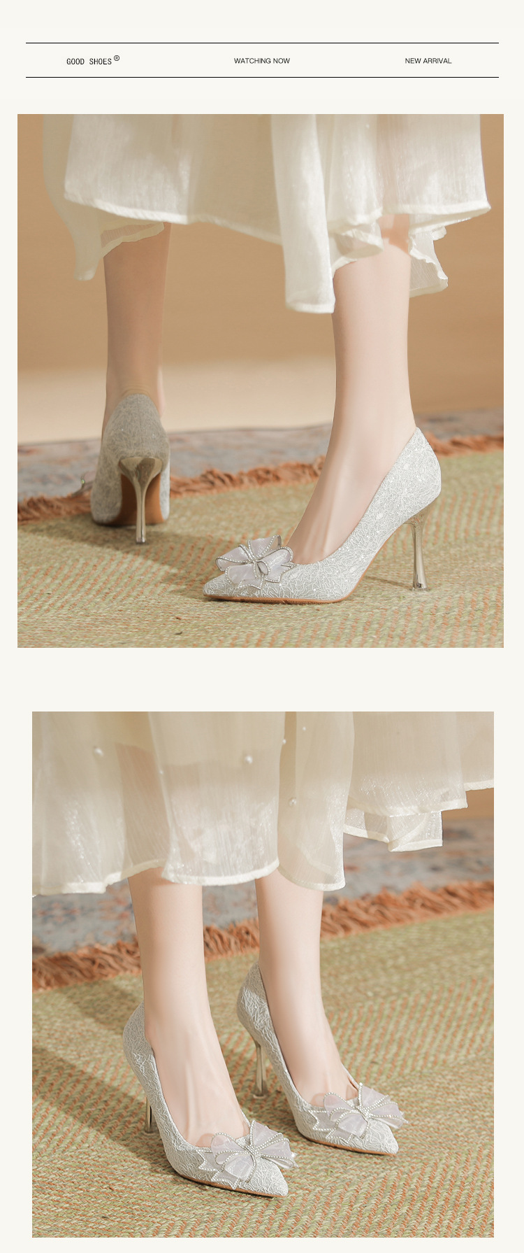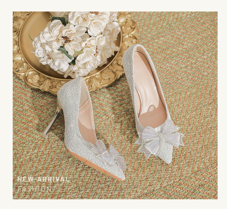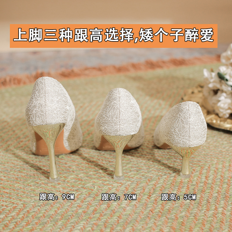316-A183 뾰족한 하이힐 여성용 스틸레토 힐 웨딩 신발 Xiuhe 웨딩 원피스 두 가지 착용 신부 들러리 신발 플러스 사이즈 지방 확대 43스토어 가기