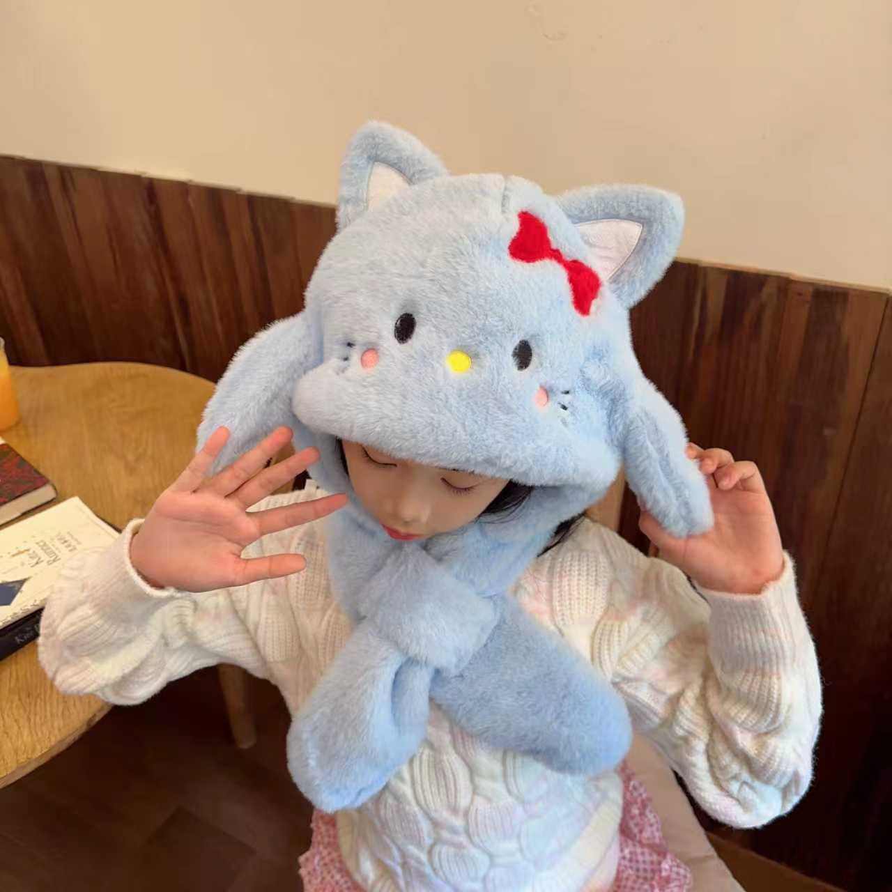 겨울 어린이 모자 3종 세트 아기 목도리 장갑 일체형 귀 보호 모자 남녀 공용 두꺼운 동북 모자 매우 귀여움스토어 가기