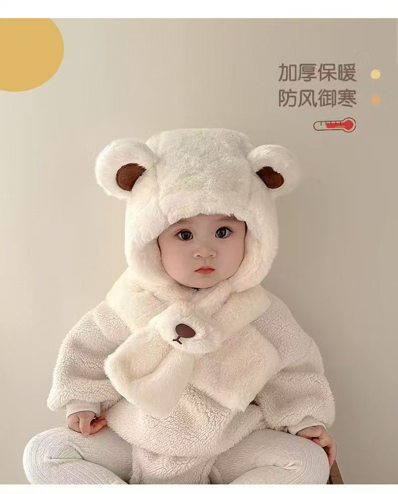 겨울 어린이 모자 3종 세트 아기 목도리 장갑 일체형 귀 보호 모자 남녀 공용 두꺼운 동북 모자 매우 귀여움