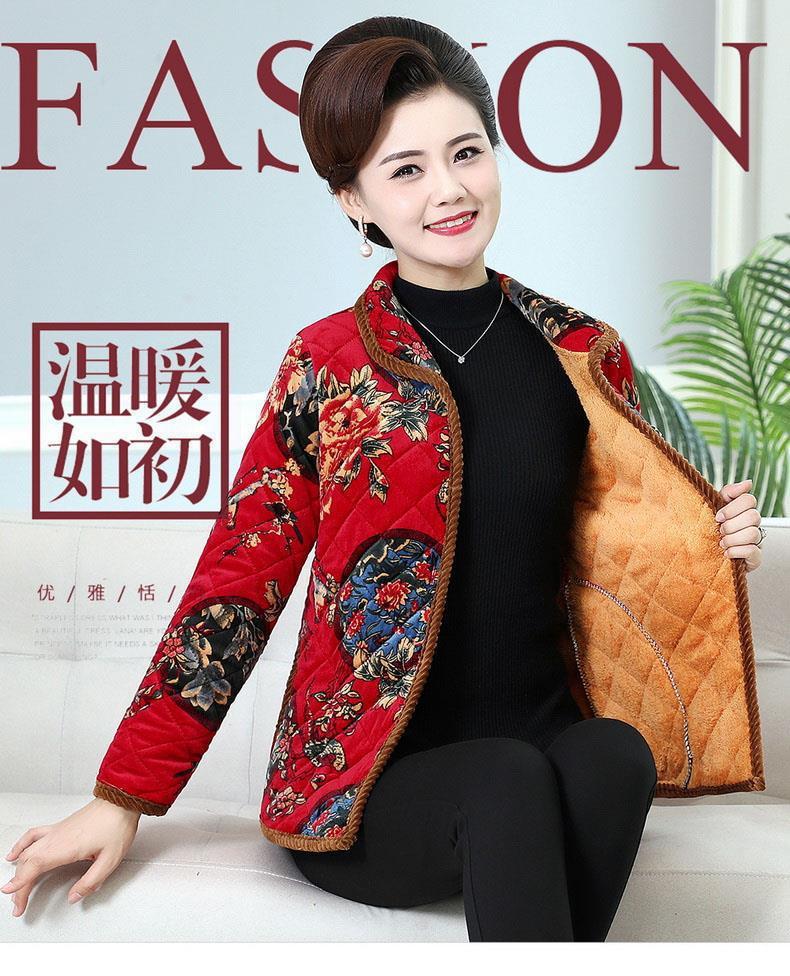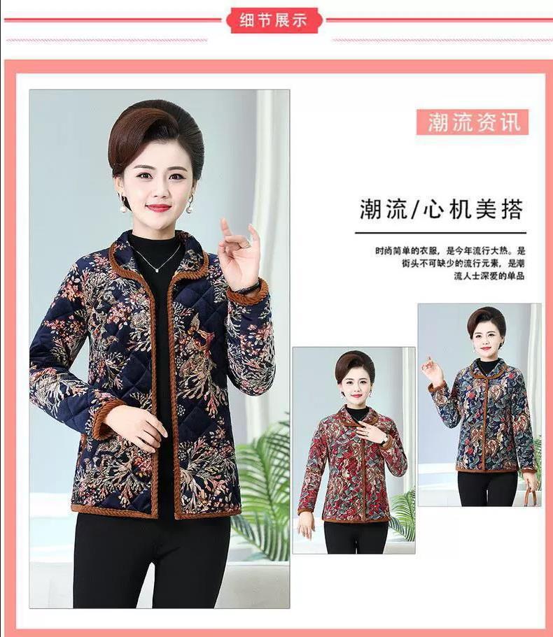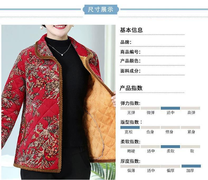 중년 어머니면 패딩 재킷 가을과 겨울 패션 플러스 사이즈 기모 두꺼운 따뜻한 꽃 옷깃면 패딩 재킷 도매