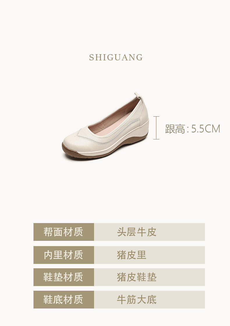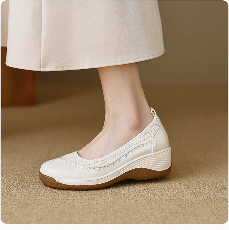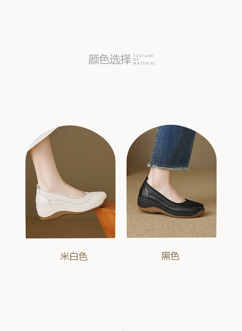 레트로 라이트 럭셔리 두꺼운 밑창 슬립온 여성용 진짜 소가죽 라운드 토 슈즈 2025년 가을 캐주얼 하이힐 가죽 신발스토어 가기