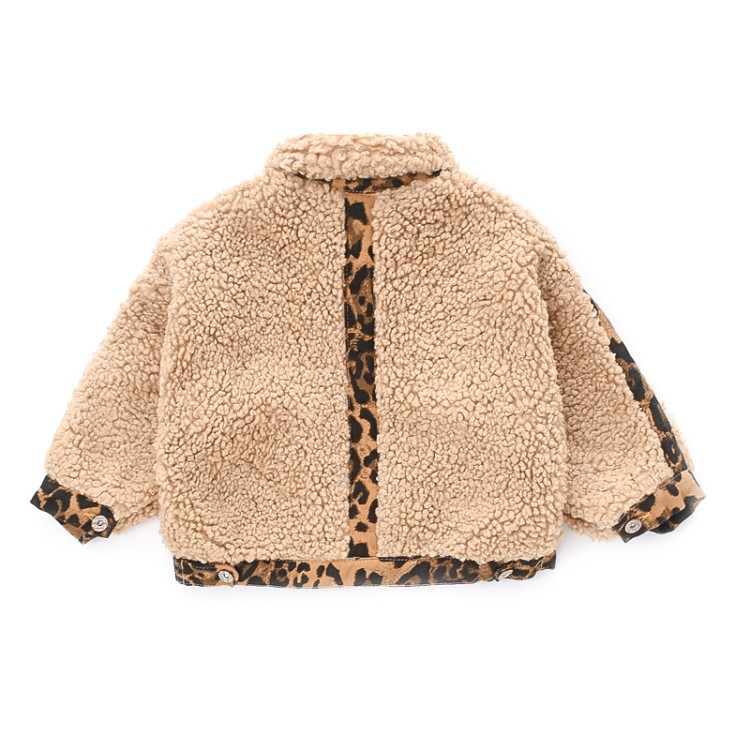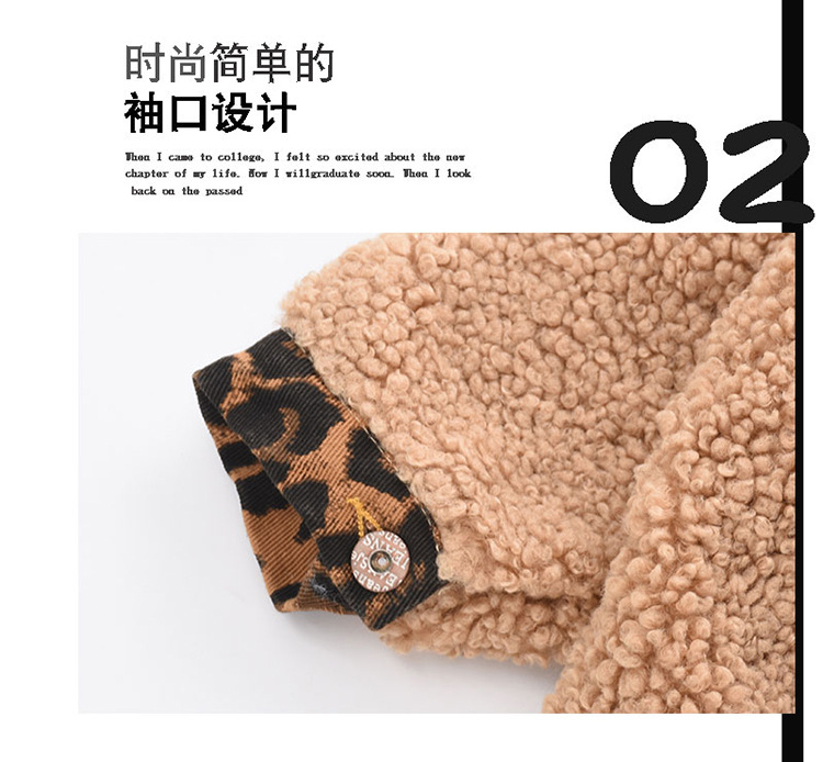 여자 가을 겨울 의류 양모 코트 2024 새로운 한국 빨간 레오파드 무늬 어린이 아기 외국 스타일 누빔안감 재킷