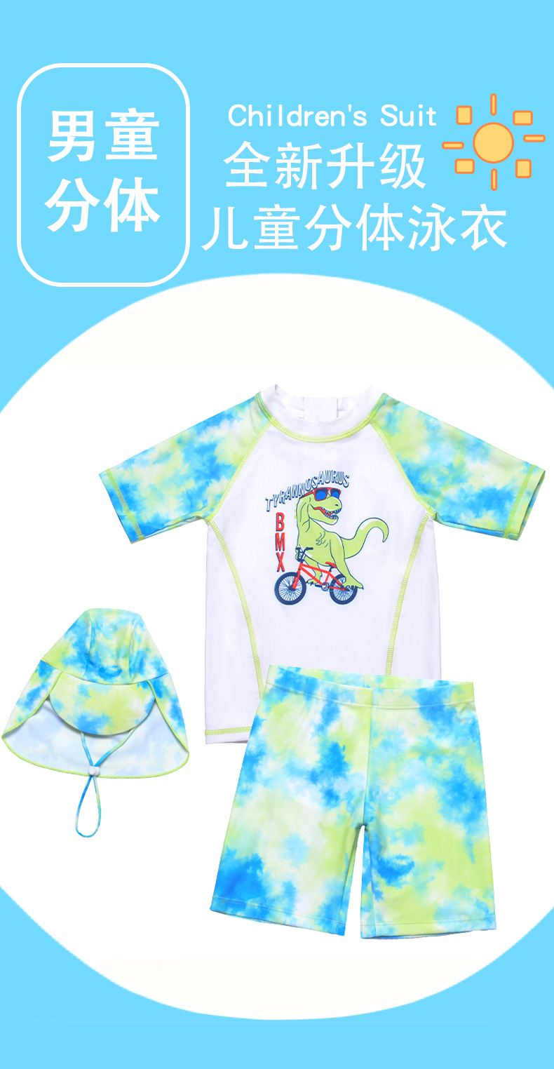 국경 간 만화 공룡 자전거 소년 반팔 바지 태양 보호 통기성 분할 다채로운 수영복 수영복스토어 가기
