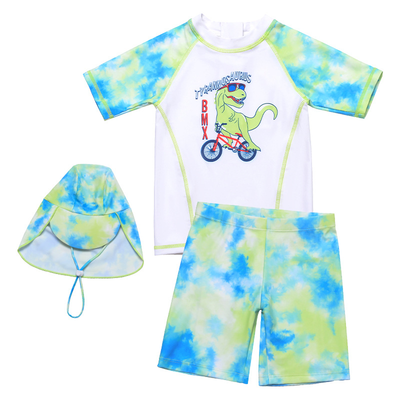 국경 간 만화 공룡 자전거 소년 반팔 바지 태양 보호 통기성 분할 다채로운 수영복 수영복