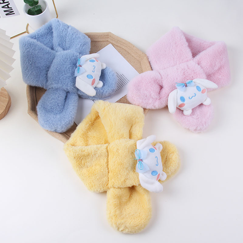 새로운 어린이 스카프 가을, 겨울 한국어 만화 아기 목 스카프 두꺼운 따뜻한 모조 토끼 모피 플러시 크로스 스카프스토어 가기