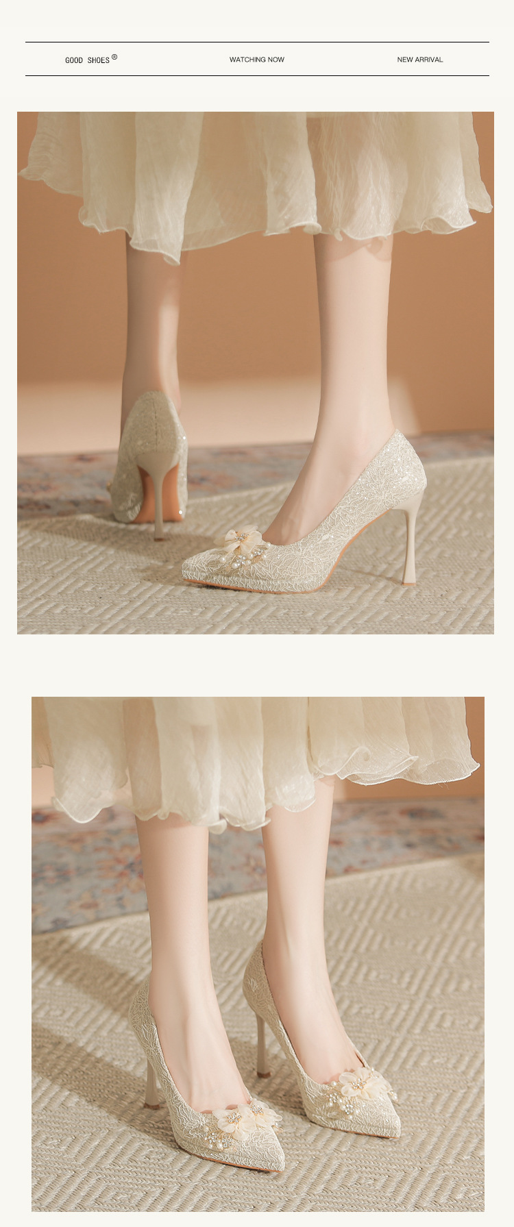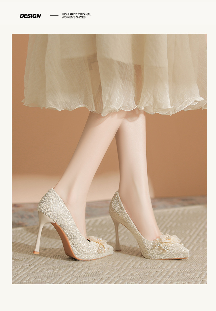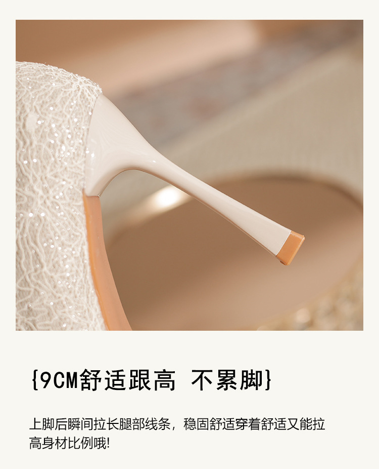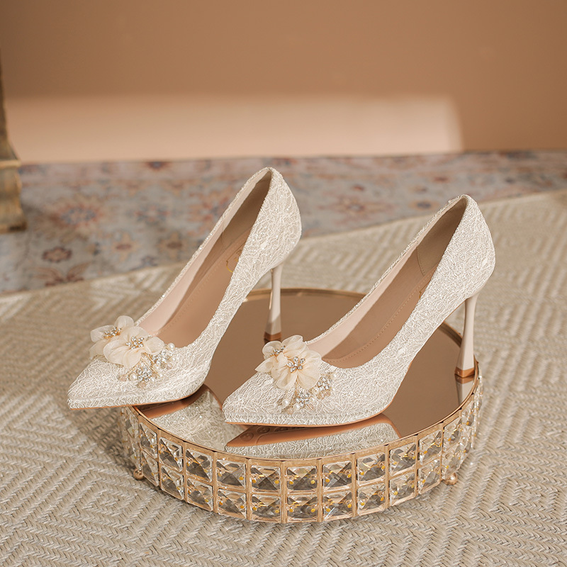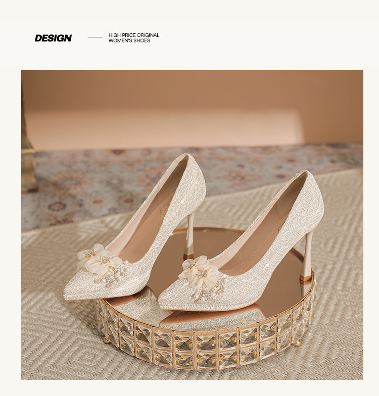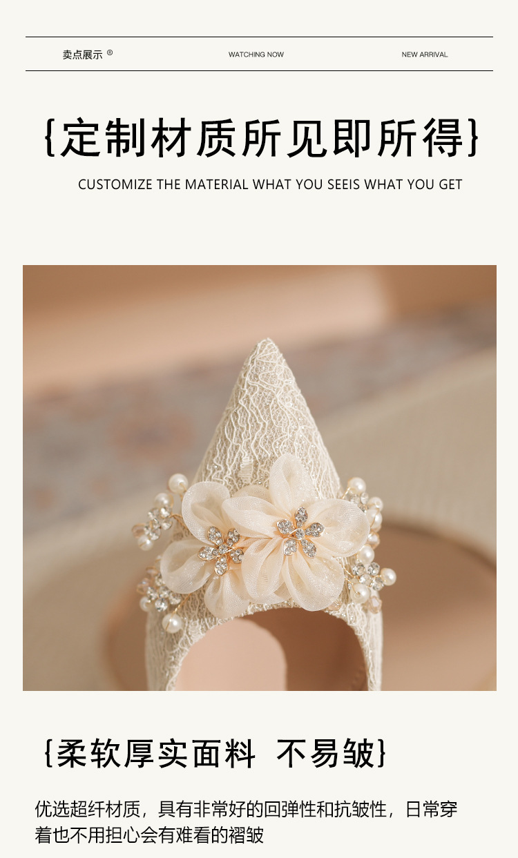 프랑스 신부 웨딩 원피스 스틸레토 힐 웨딩 신발 여성용 지칠 줄 모르는 발 방수 플랫폼 하이힐 라인스톤 꽃 얕은 입 스틸레토 힐 신발스토어 가기