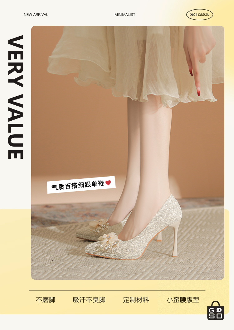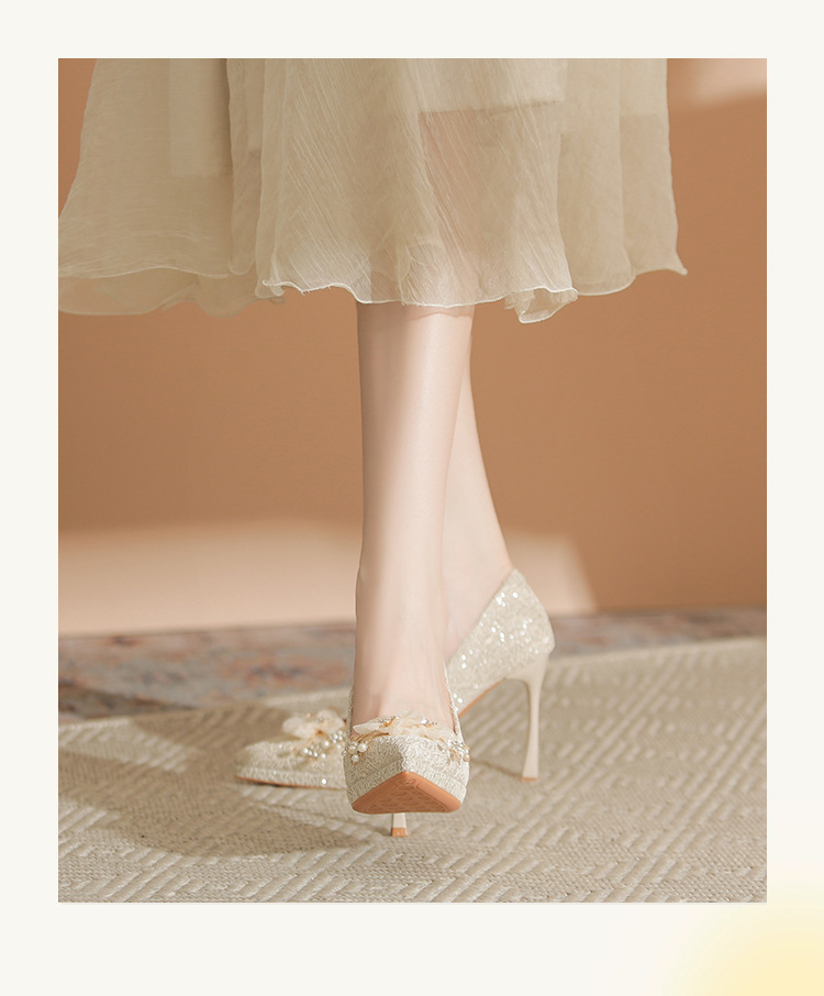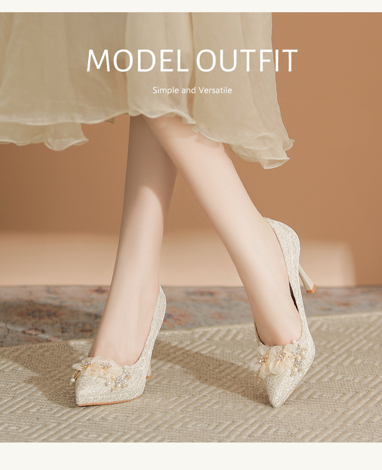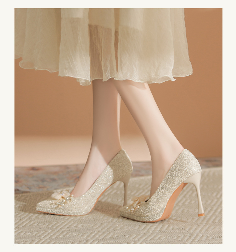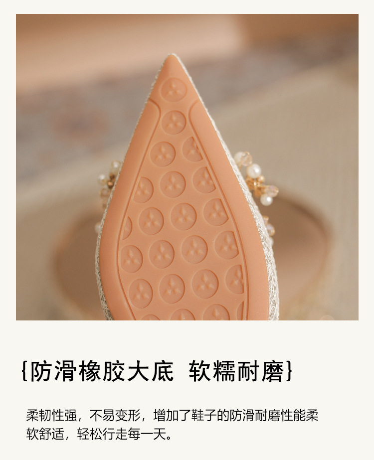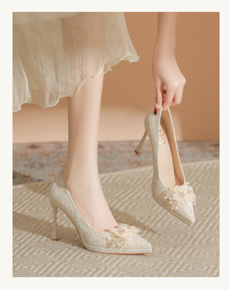 프랑스 신부 웨딩 원피스 스틸레토 힐 웨딩 신발 여성용 지칠 줄 모르는 발 방수 플랫폼 하이힐 라인스톤 꽃 얕은 입 스틸레토 힐 신발스토어 가기