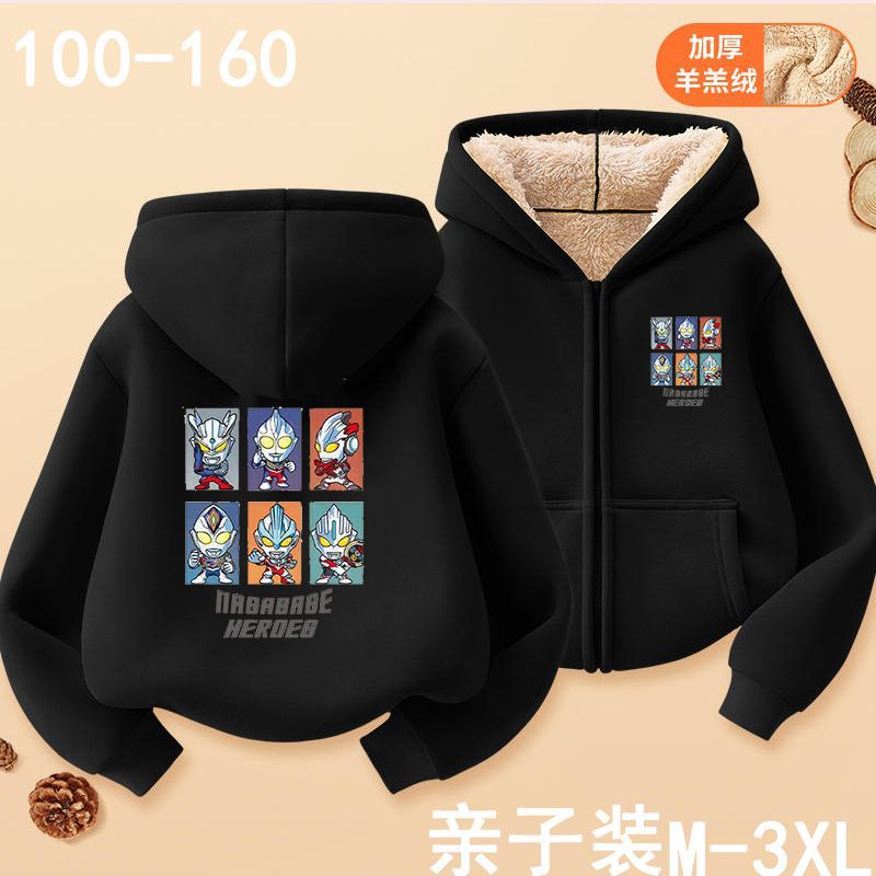 가을과 겨울 아버지-아들 부모-아들 아들의 카디건 지퍼 재킷 Degas Saiven Altman 기모 후드 재킷 트렌디