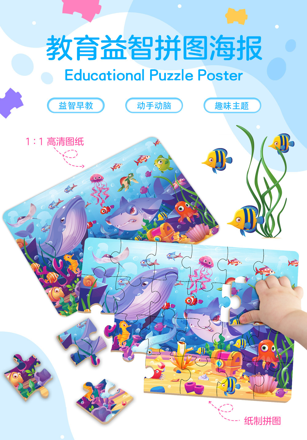 국경 간 새로운 어린이 퍼즐 재미있는 DIY 종이 퍼즐 어린이 조기 교육 해양 장면 퍼즐