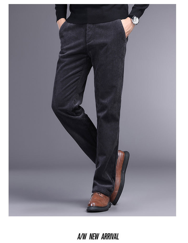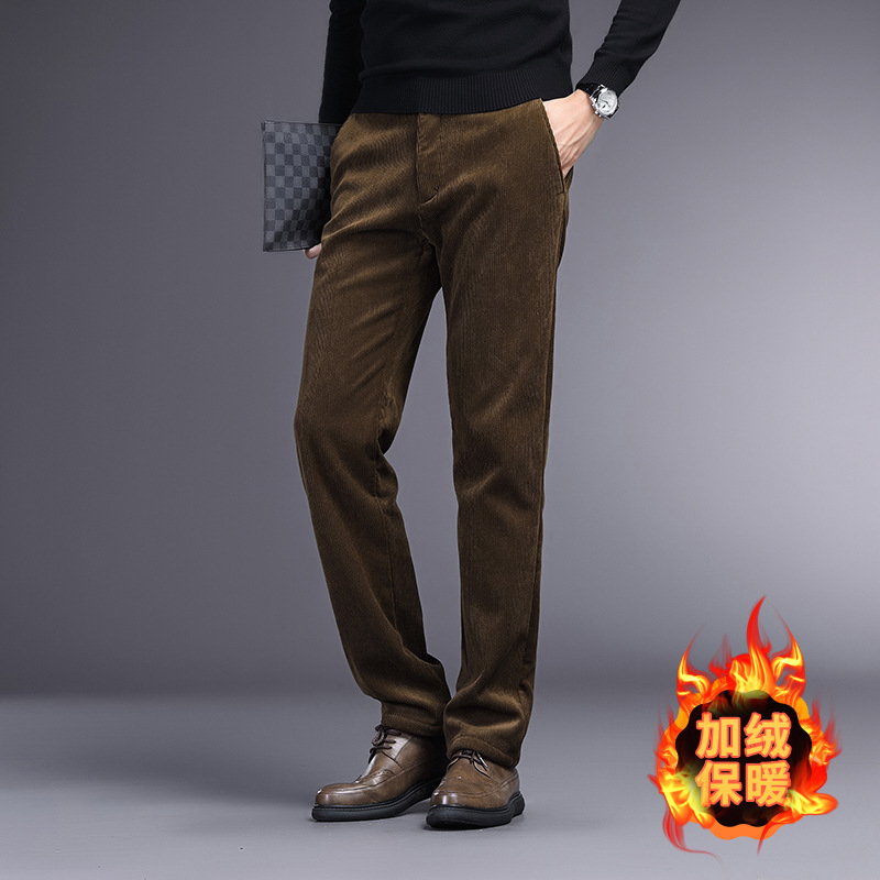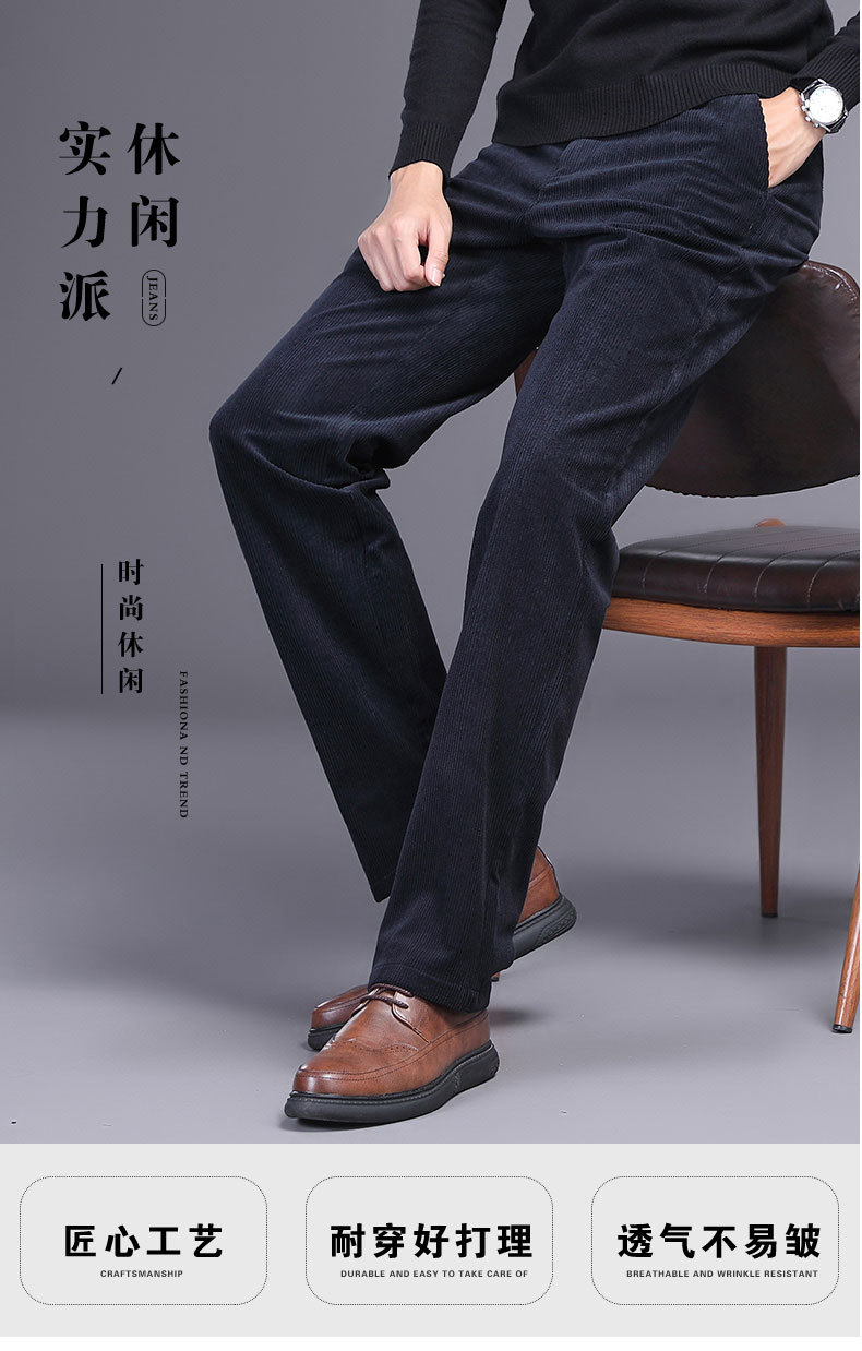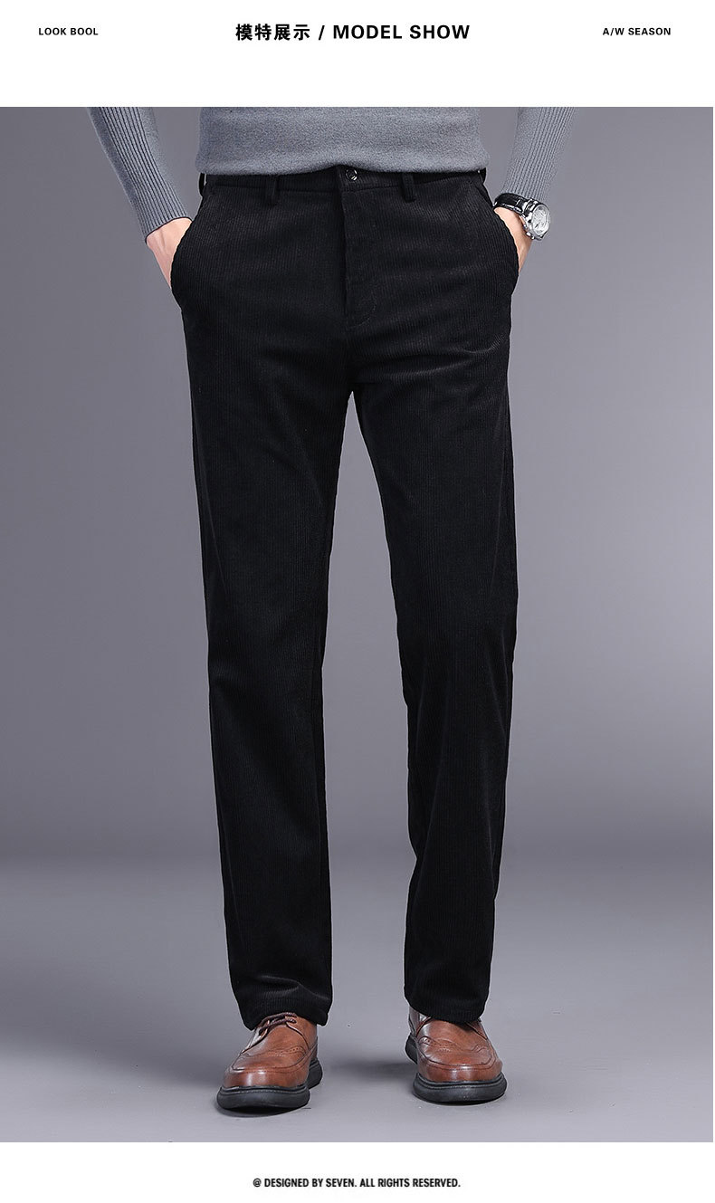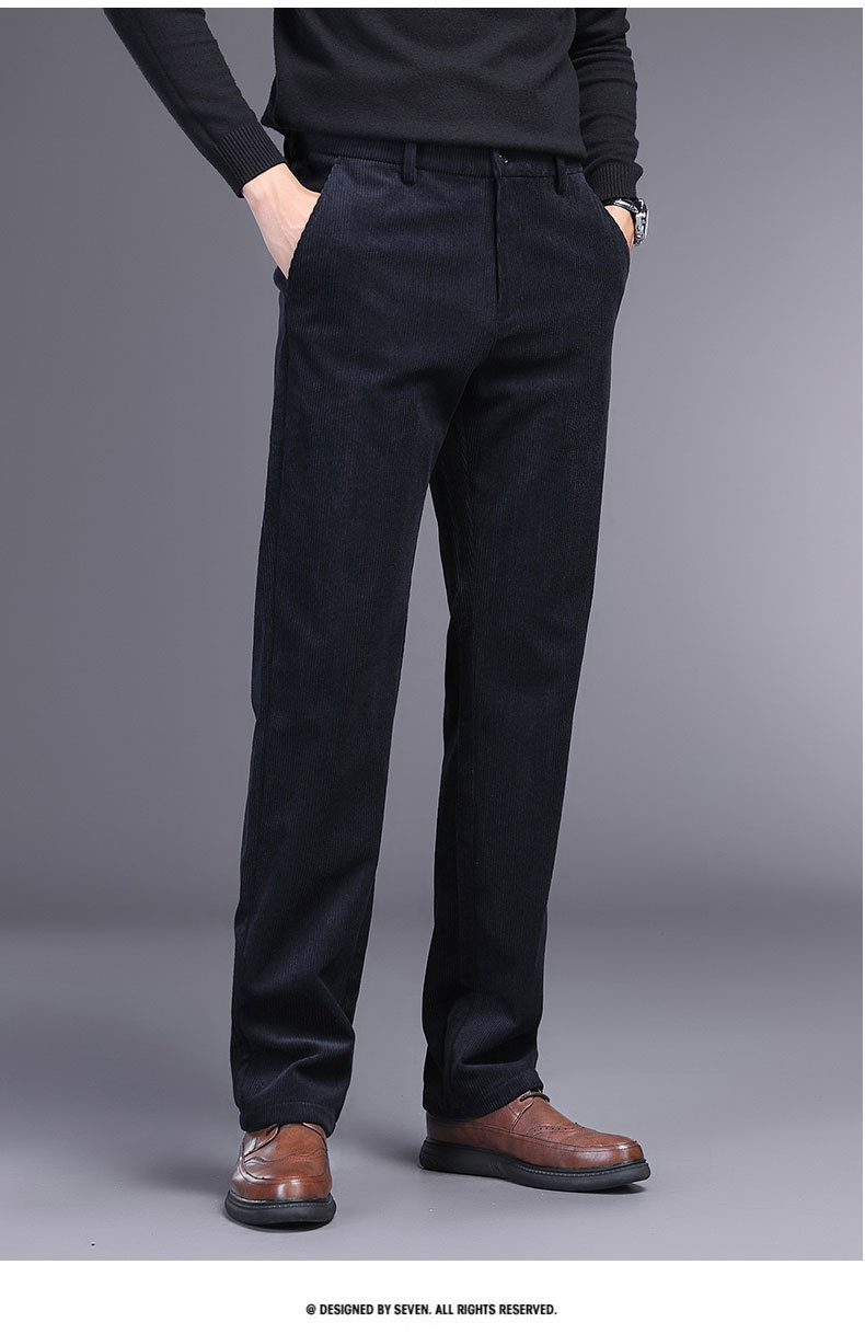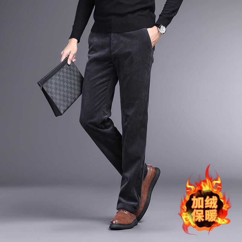하이 퀄리티 남성 코듀로이 캐주얼 바지 스트레이트 루즈 롱 바지 남성 중년 및 노인 아빠의 겨울 두께스토어 가기