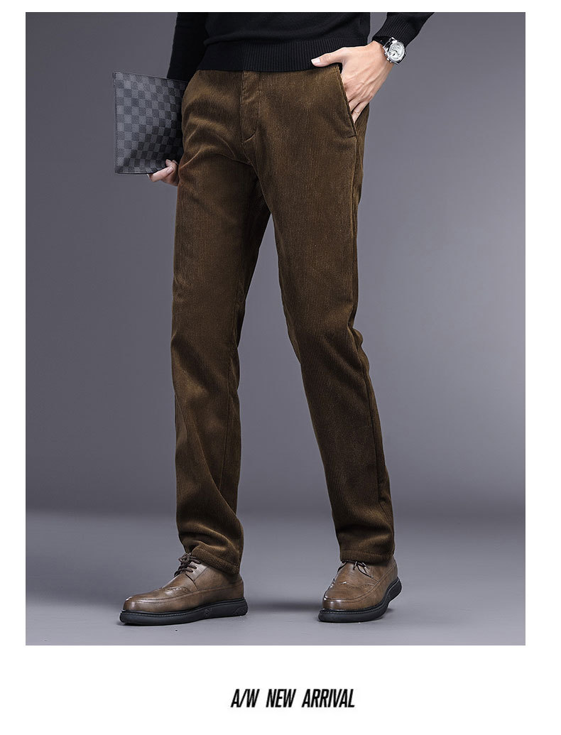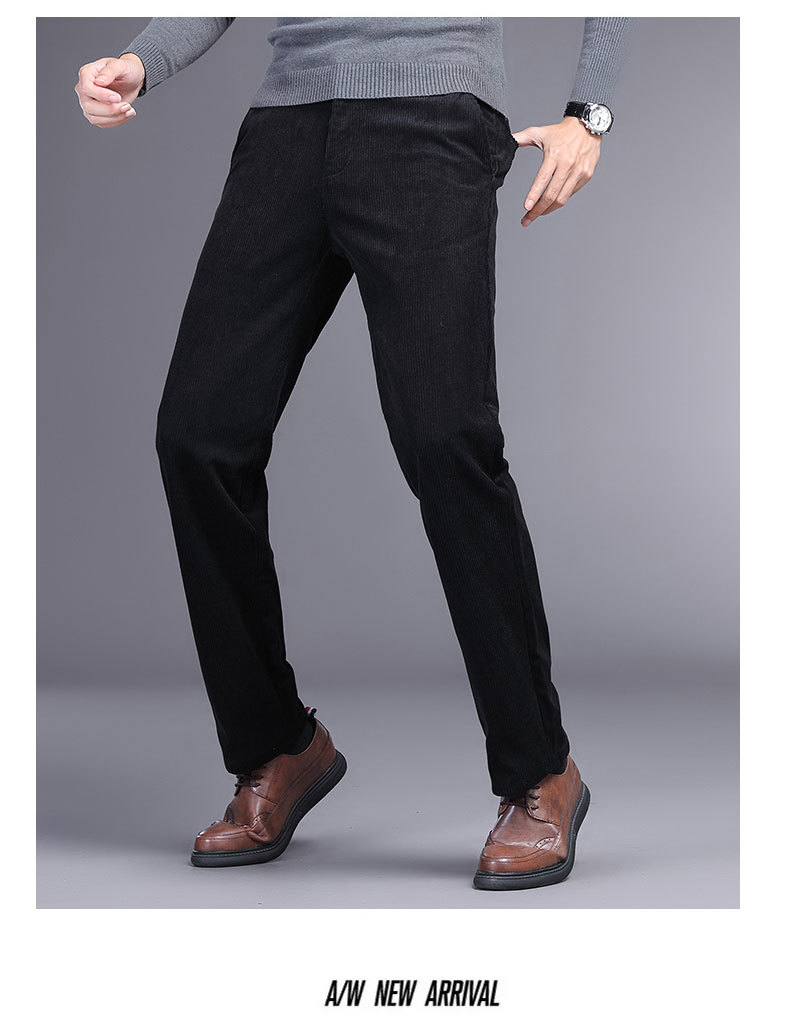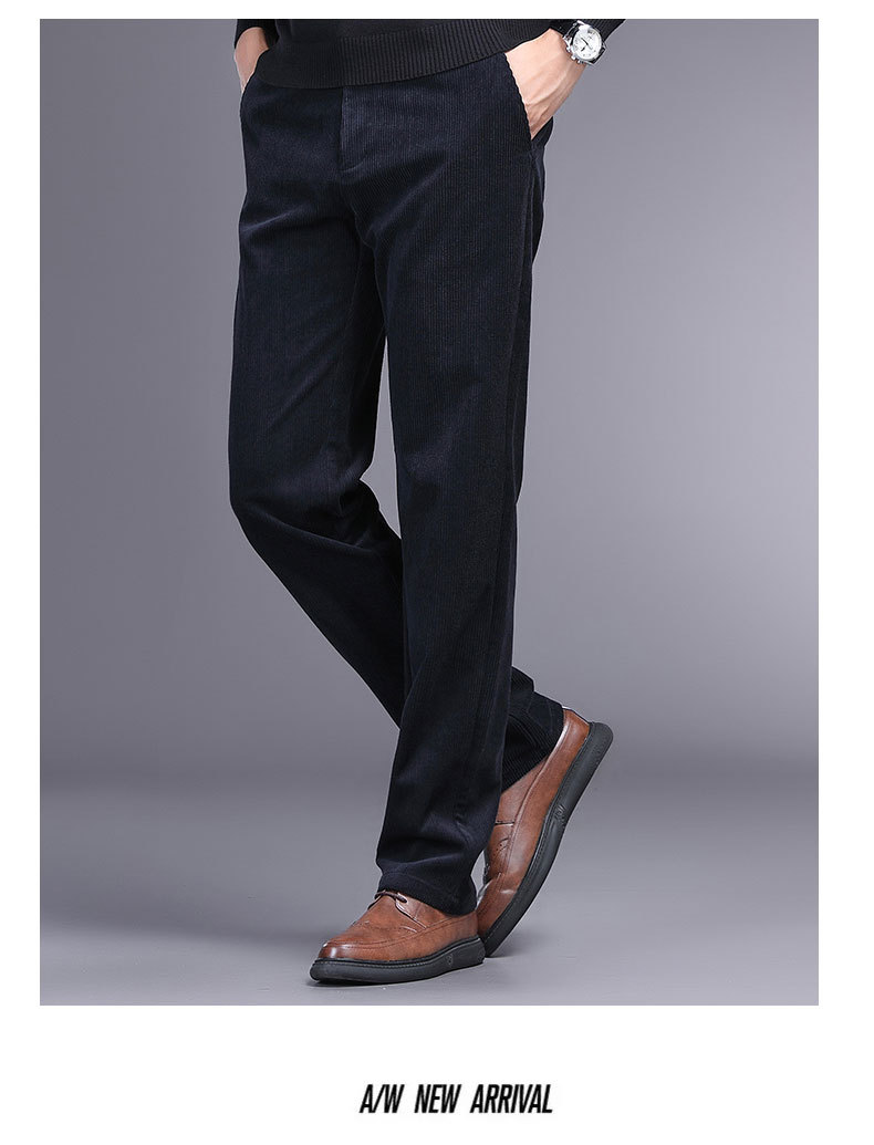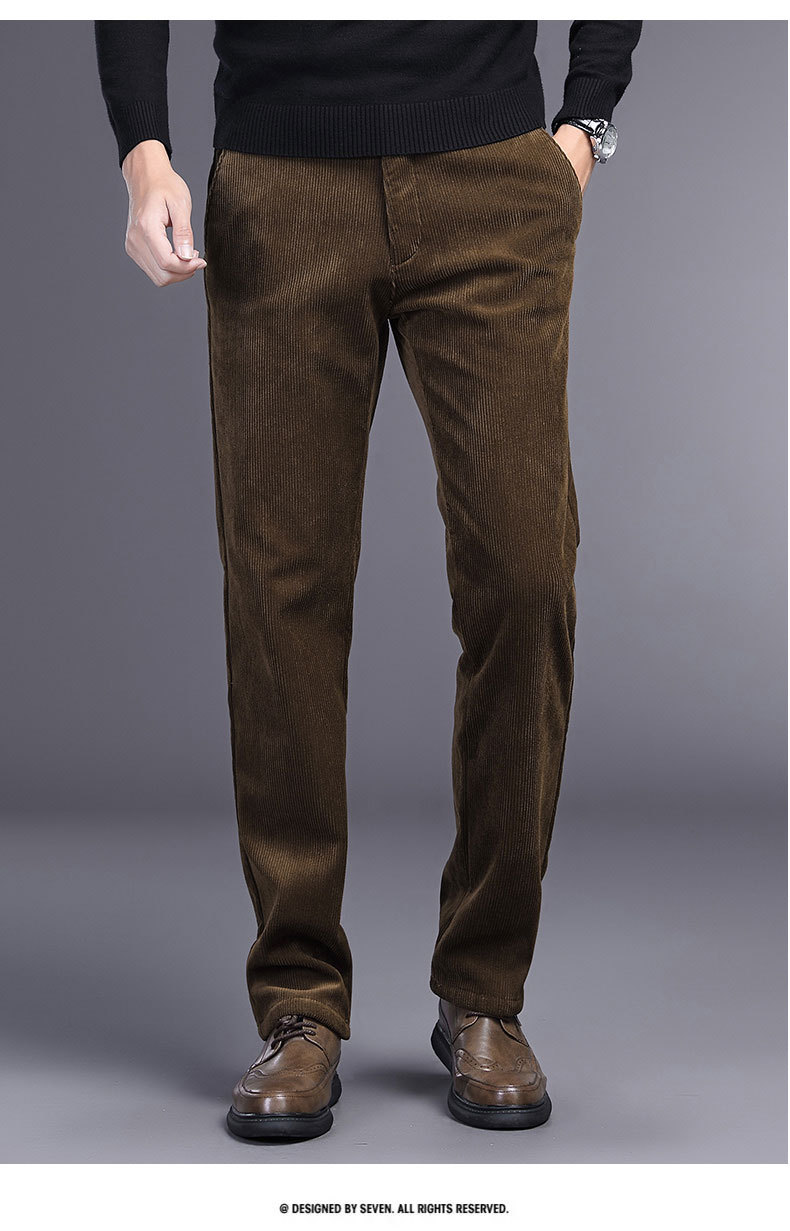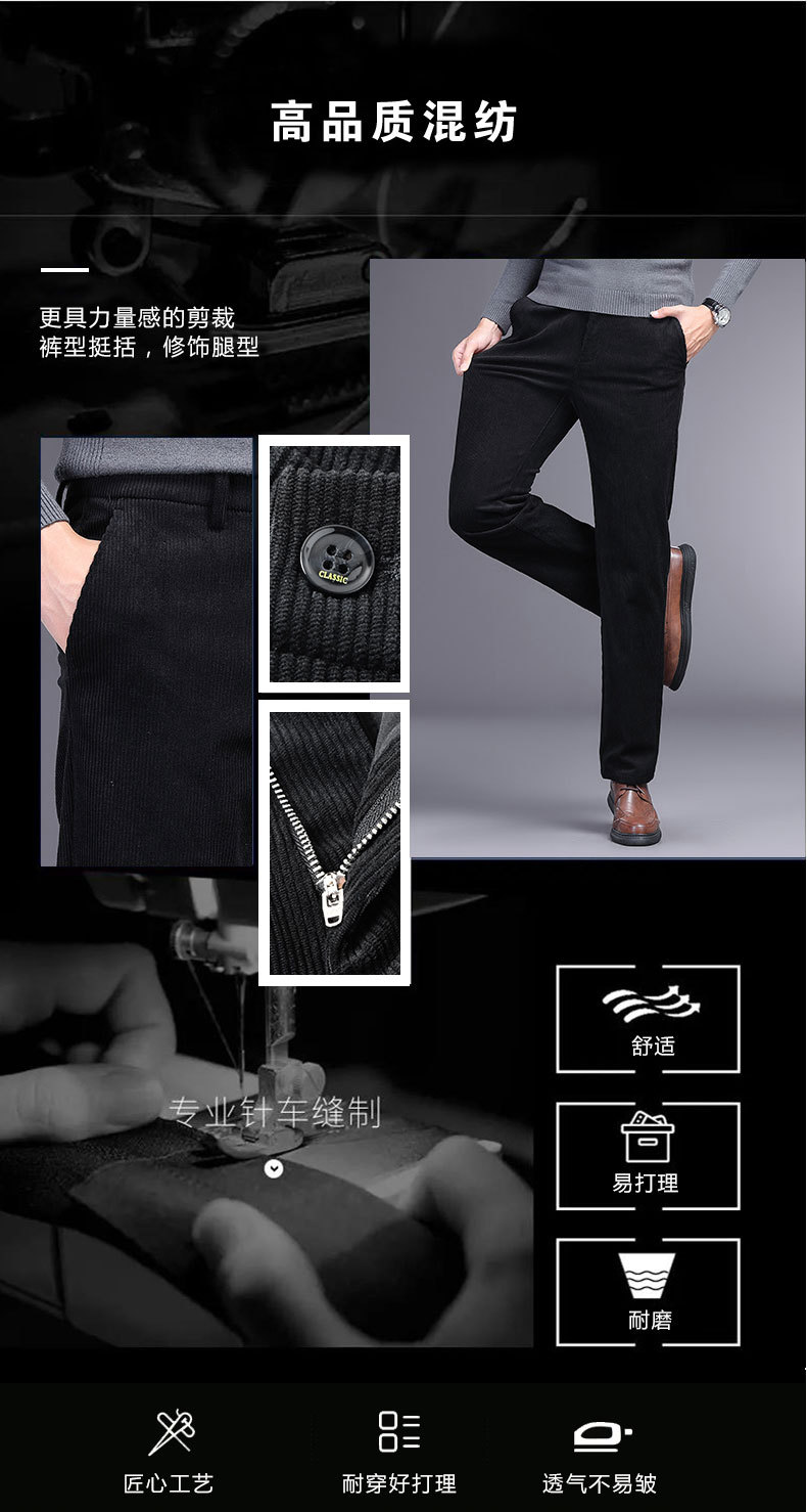 하이 퀄리티 남성 코듀로이 캐주얼 바지 스트레이트 루즈 롱 바지 남성 중년 및 노인 아빠의 겨울 두께스토어 가기