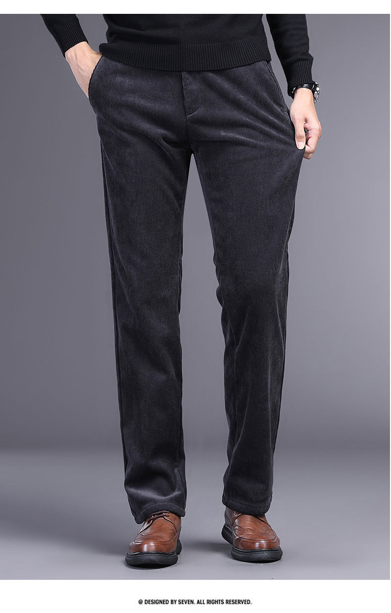 하이 퀄리티 남성 코듀로이 캐주얼 바지 스트레이트 루즈 롱 바지 남성 중년 및 노인 아빠의 겨울 두께