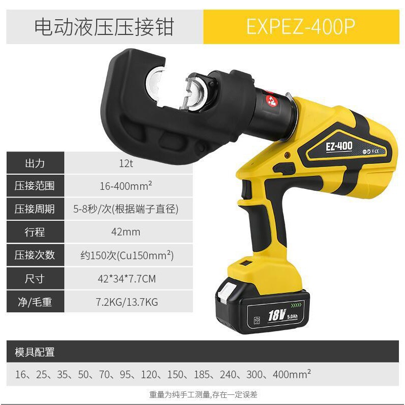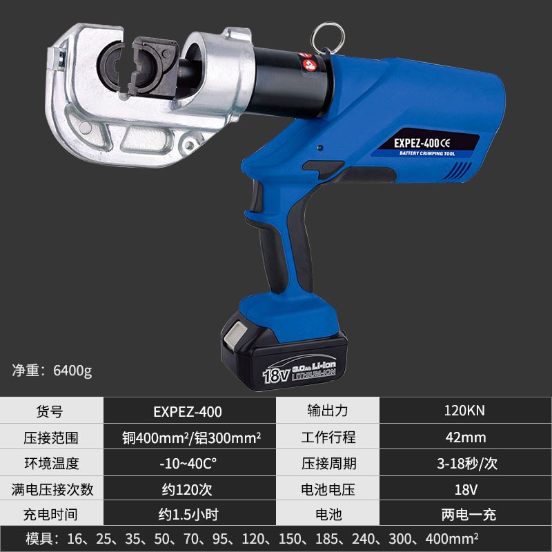 충전식 전기 유압 압착기 케이블 전기 유압 클램프 압착기 단자 클램프 EXPEZ-400