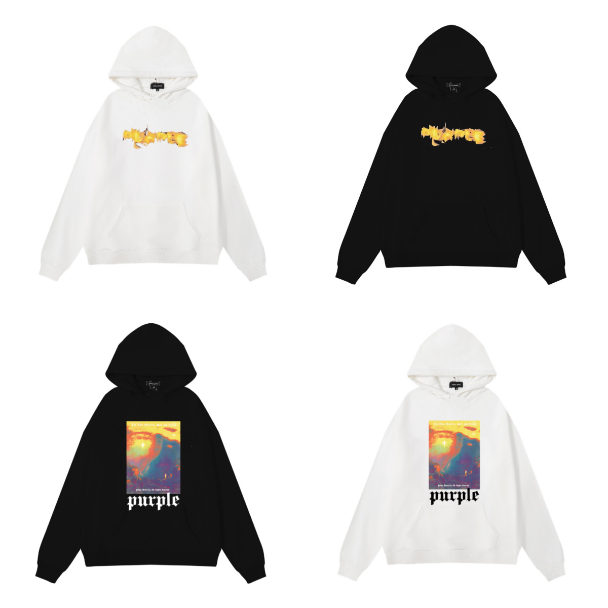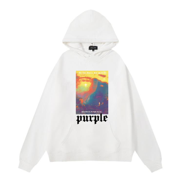 도매 가을과 겨울 보라색 클래식 편지 인쇄 미국 거리 패션 브랜드 무거운 후드 땀 남성과 여성