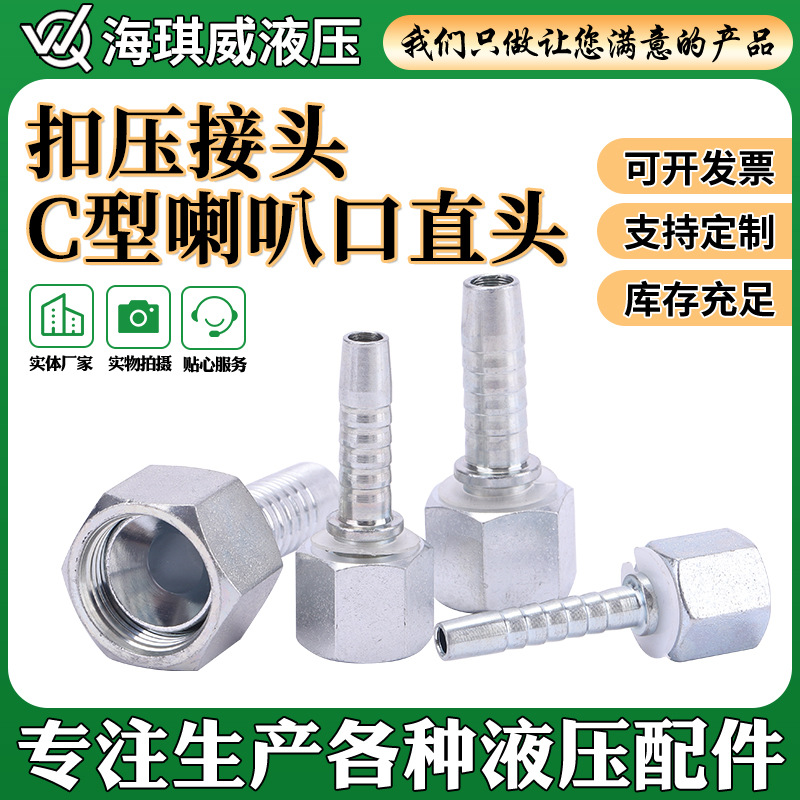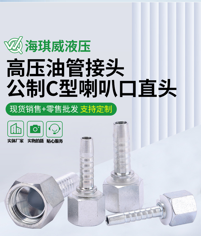 탄소 강철 고압 오일 파이프 피팅 20712 미터 C 형 플레어 입 스트레이트 헤드 압력 호스 피팅