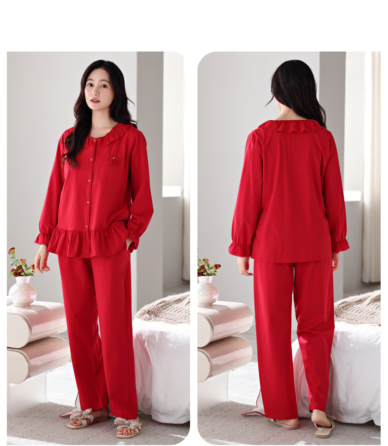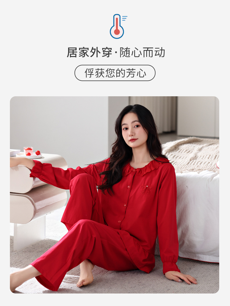 잠옷 여성의 봄과 가을 면화 긴팔 가을 붉은 웨딩 웨딩 드래곤 년 공주 스타일 홈 의류 세트스토어 가기