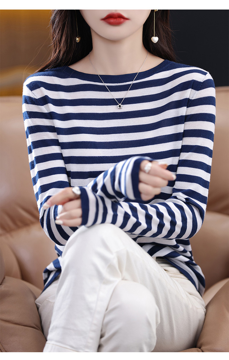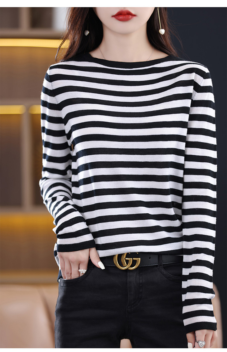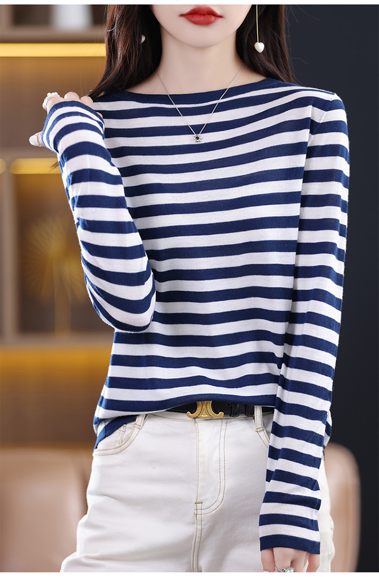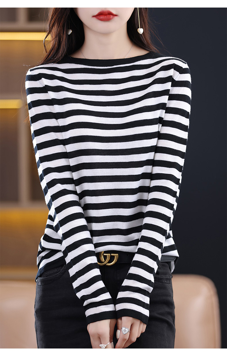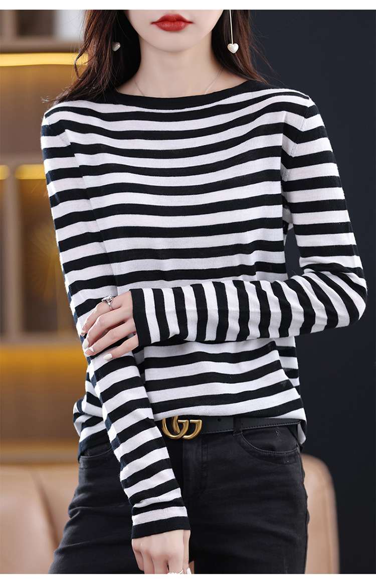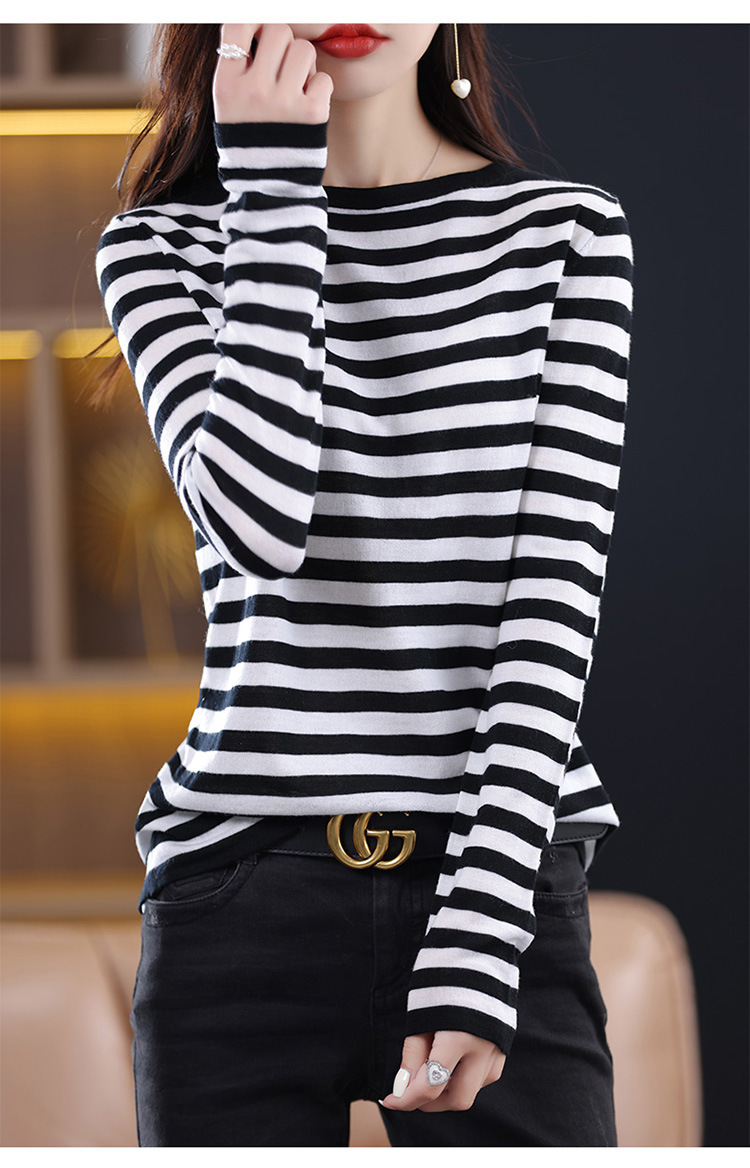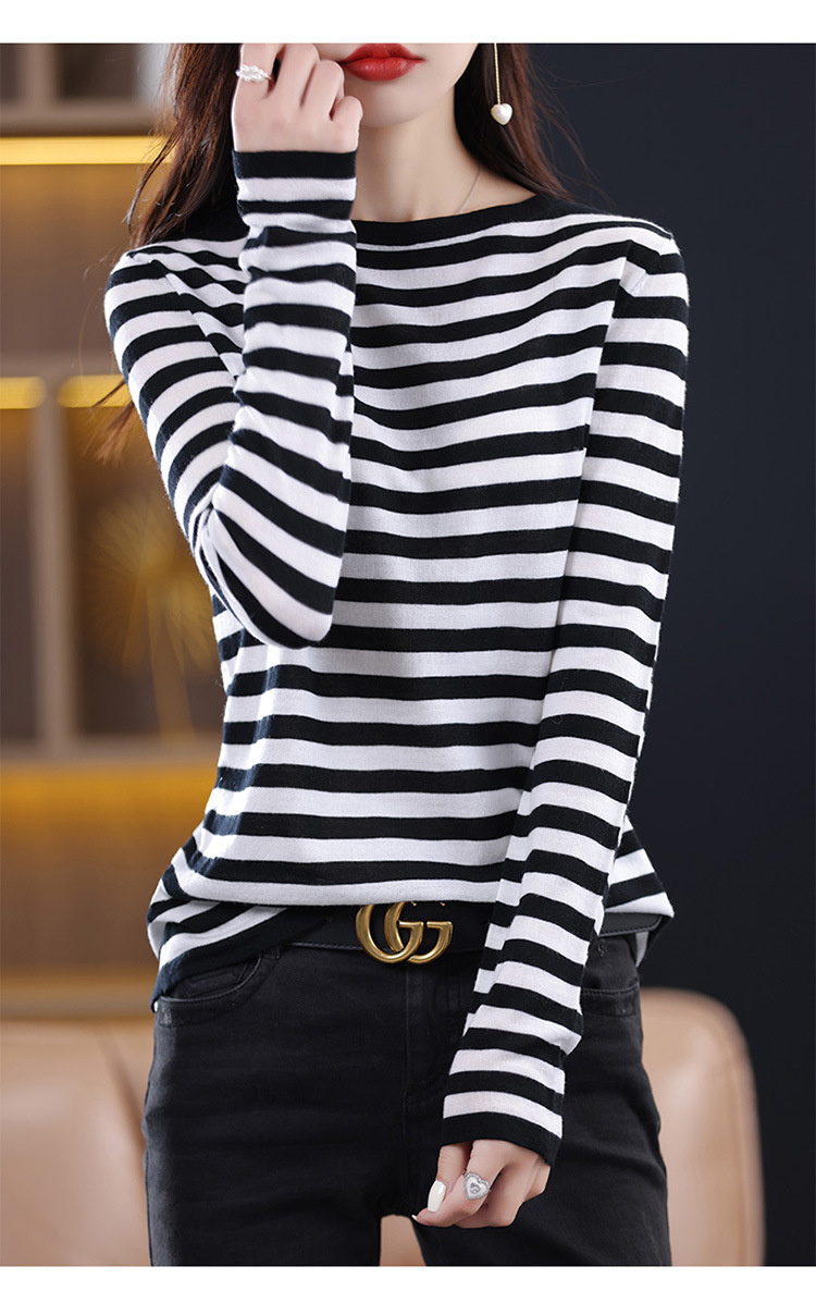 최악의 줄무늬 모직 스웨터 2024 가을 및 겨울 새로운 여성의 루즈베이스 모든 경기 연령 감소 칼라가있는 얇은 스웨터스토어 가기