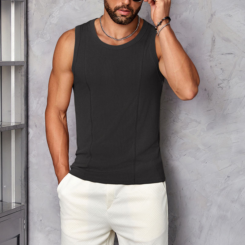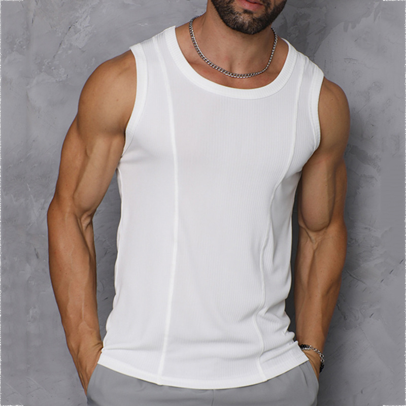 여름 남자의 새로운 스포츠 레저 달리기 피트니스 운동 단단한 탄성 빠른 건조 스트립 단색 민소매 조끼