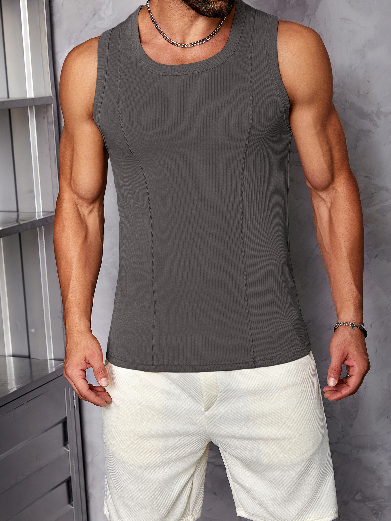 여름 남자의 새로운 스포츠 레저 달리기 피트니스 운동 단단한 탄성 빠른 건조 스트립 단색 민소매 조끼스토어 가기