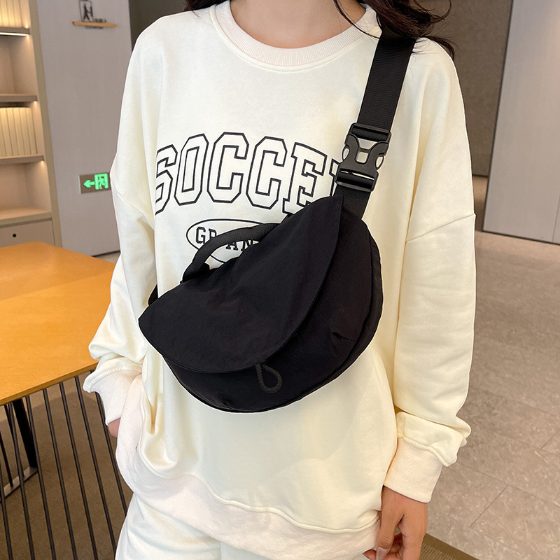 한국 스타일 유행 간단한 스포츠 크로스 바디 백 여성의 2024 새로운 피트니스 승마 허리 가방 나일론 만두 어깨 가방스토어 가기