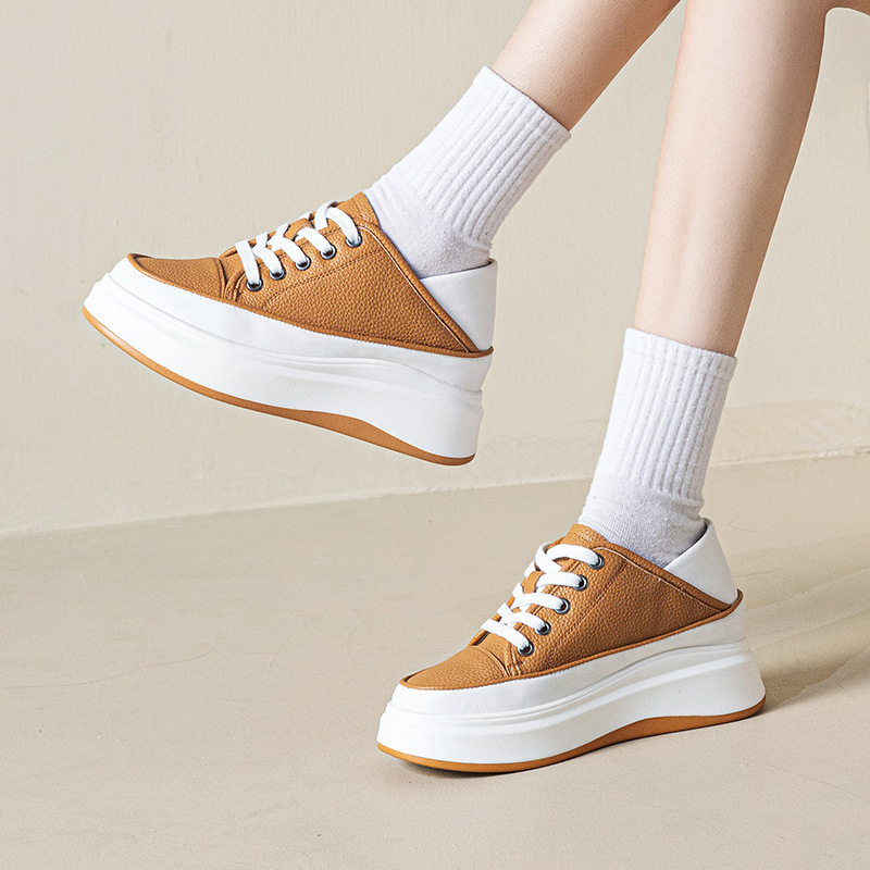 정품 가죽 힐 더블 흰색 신발 여성 내부 높이 증가 스몰 사이즈 싱글 신발 31 32 33 두꺼운 단독 게으른 캐주얼 싱글 신발 새로운