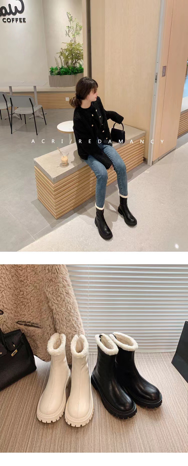 가을과 겨울 2024 얇은 다리의 한국판 기모 코튼 부츠 캐주얼 편안한 따뜻한 국경 대외 무역 플러스 사이즈 여성 신발