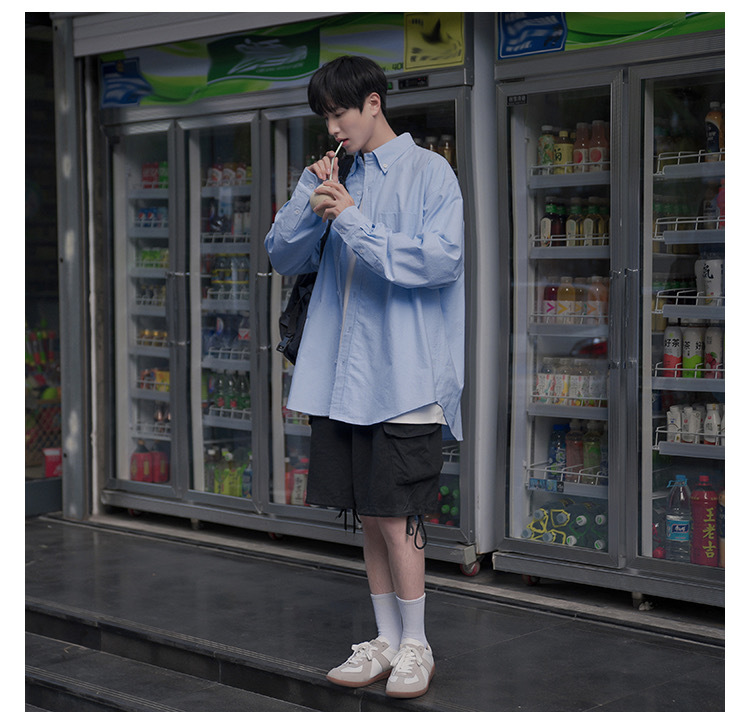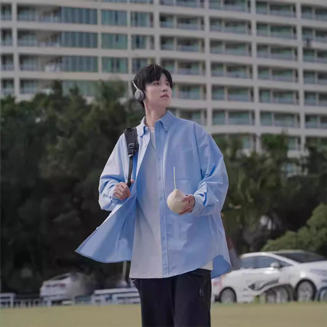 일본 도시 소년 긴팔 셔츠 남자의 봄과 가을 잘 생긴 청소년 느슨한 홍콩 스타일 캐주얼 올 매치 셔츠 재킷스토어 가기