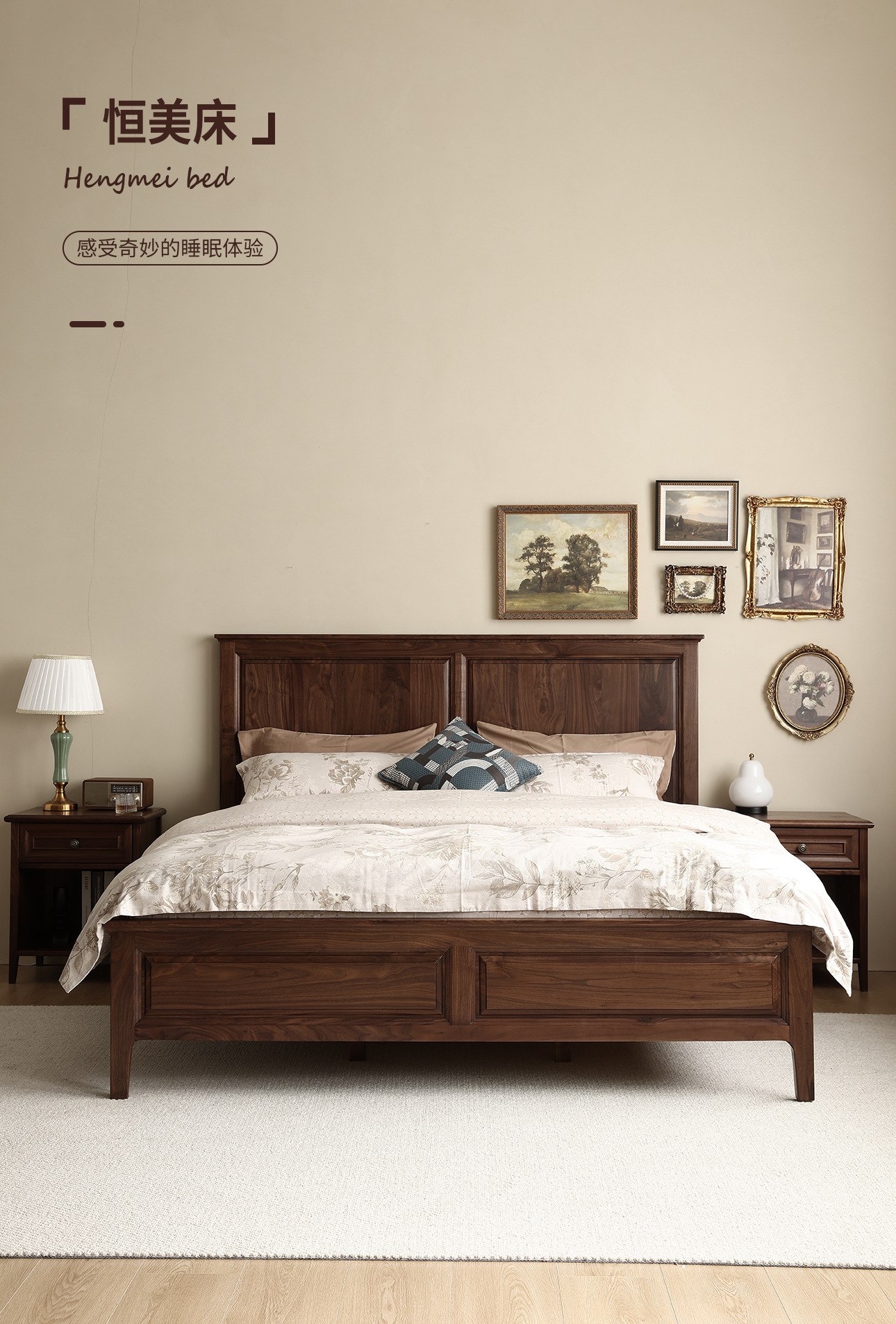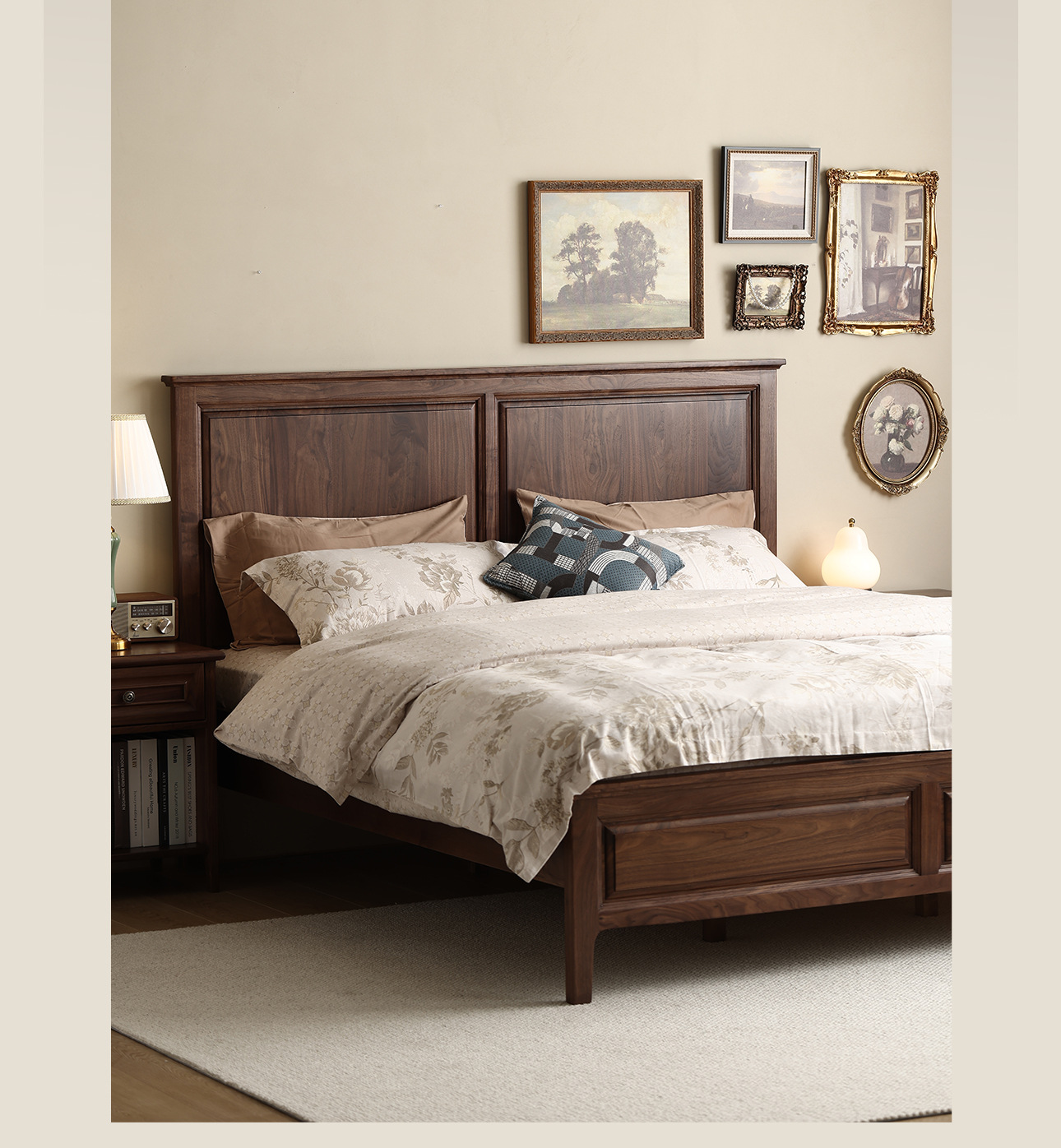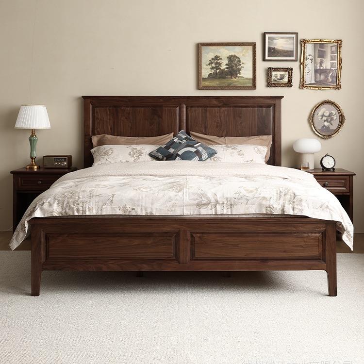 미국 스타일의 단단한 나무 침대 북미 검은 호두 더블 침대 레트로 1.8 m 1.5 현대 간단한 마스터 침실 웨딩 침대 중세 고대