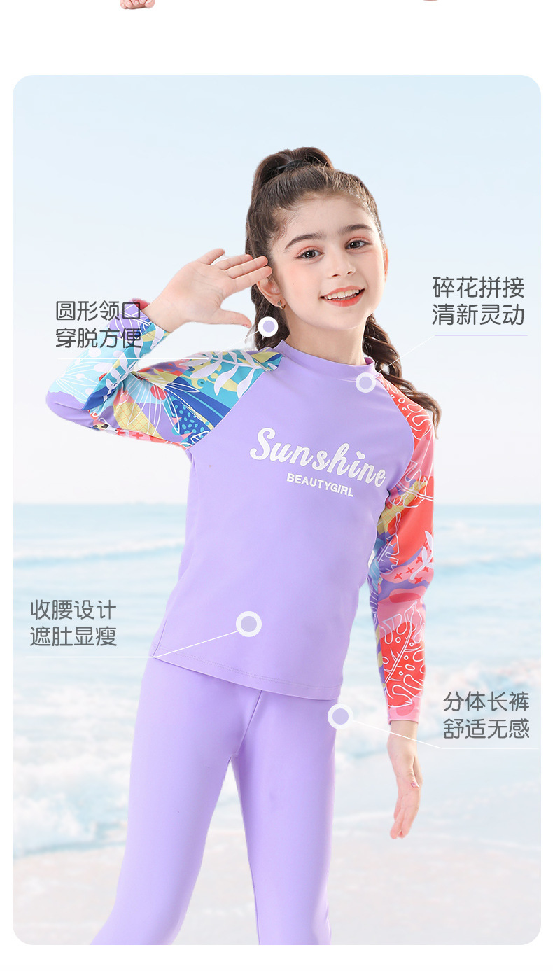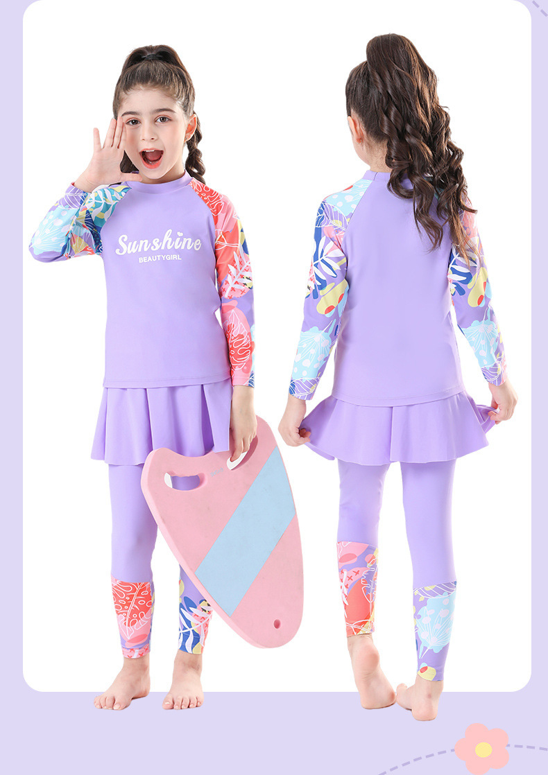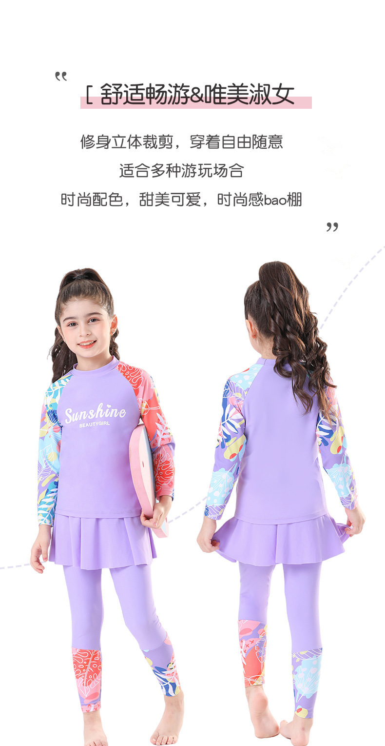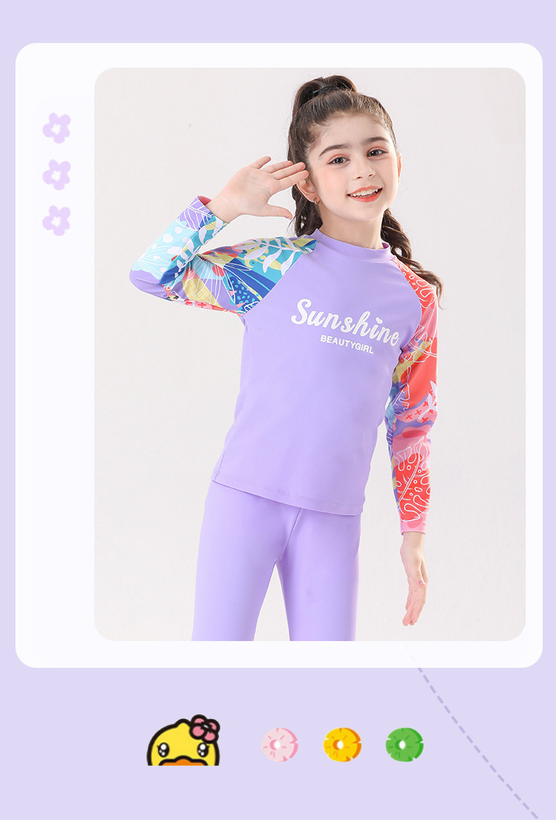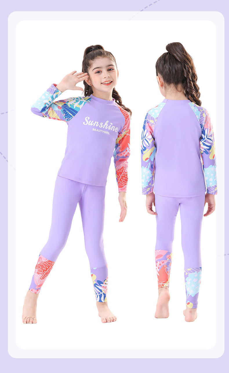 새로운 큰 어린이와 소녀의 속건성 수영복 온천 겨울 여행 자외선 차단 바지 긴팔 핑크와 보라색 비치웨어스토어 가기