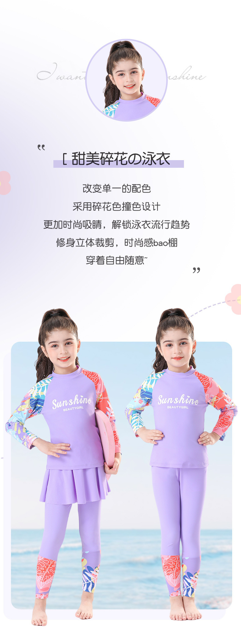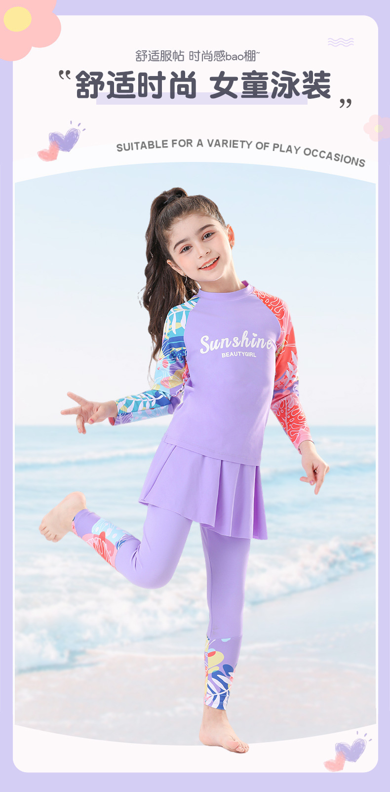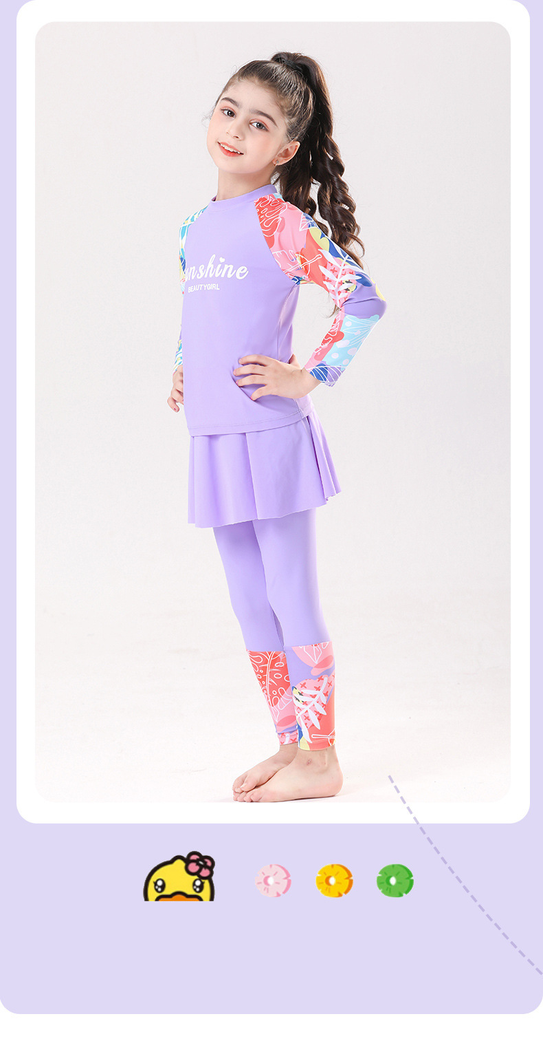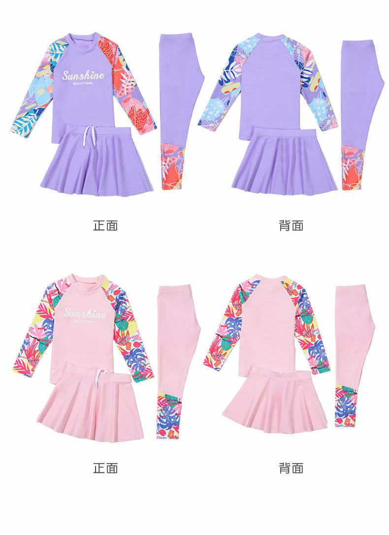 새로운 큰 어린이와 소녀의 속건성 수영복 온천 겨울 여행 자외선 차단 바지 긴팔 핑크와 보라색 비치웨어스토어 가기