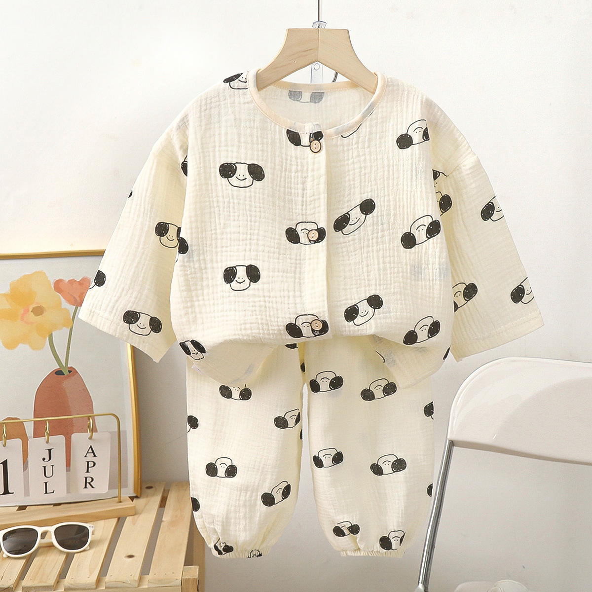봄과 가을 어린이 잠옷 홈 세트 어린이 클래스 A 면 긴 소매 아기 더블 거즈 카디건 베이비