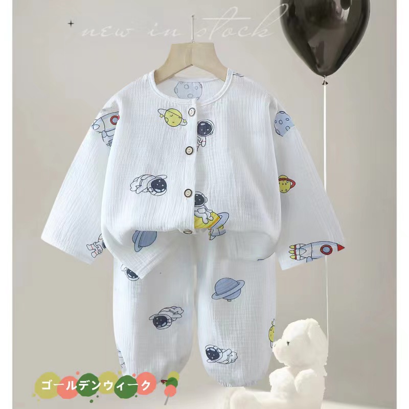 봄과 가을 어린이 잠옷 홈 세트 어린이 클래스 A 면 긴 소매 아기 더블 거즈 카디건 베이비스토어 가기