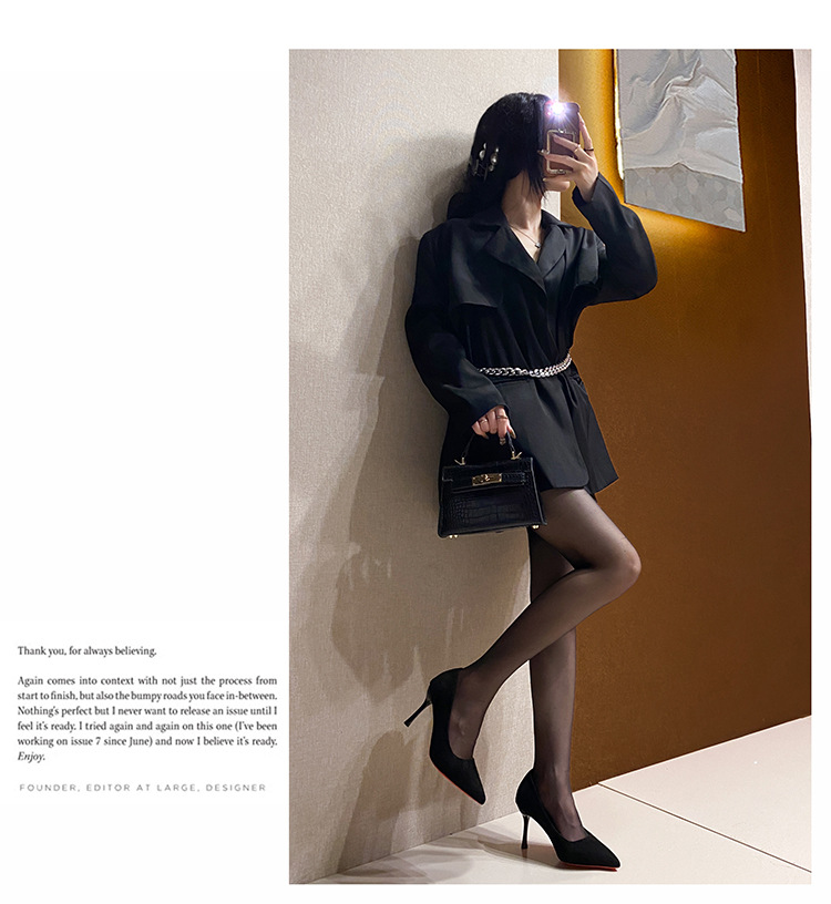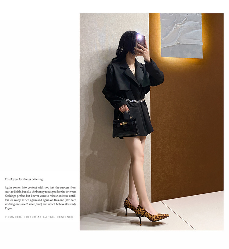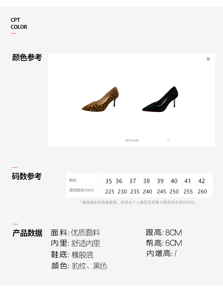 2024 년 새 한국식 하이힐 여성 스틸레토 힐 뾰족한 고양이 다큐멘터리 신발 검은 섹시한 스웨이드 레오파드 무늬 국경 여성 신발스토어 가기