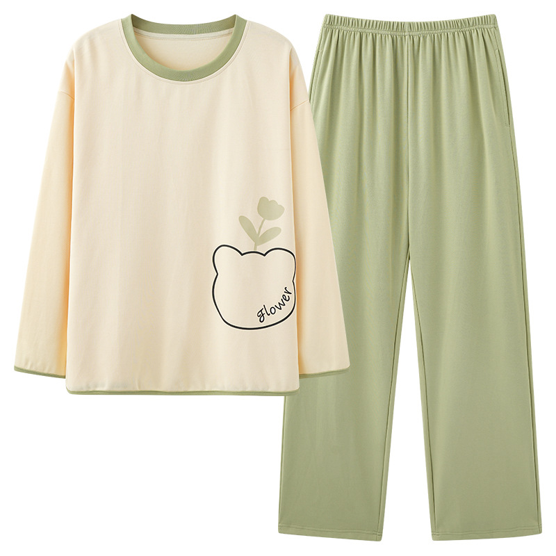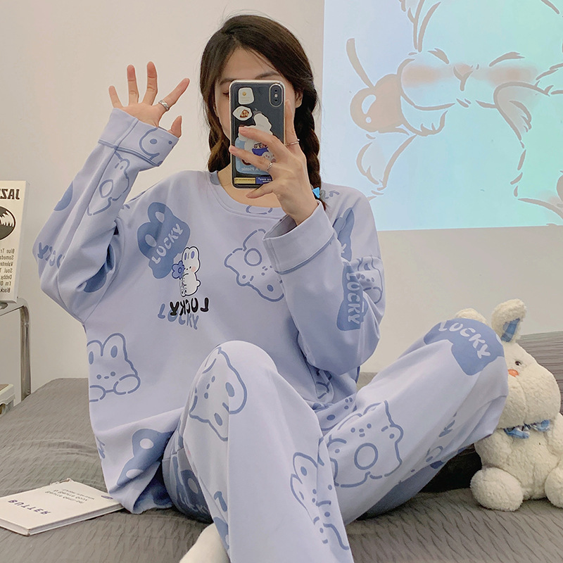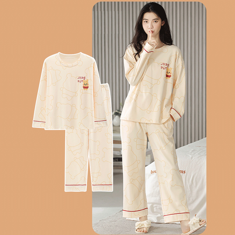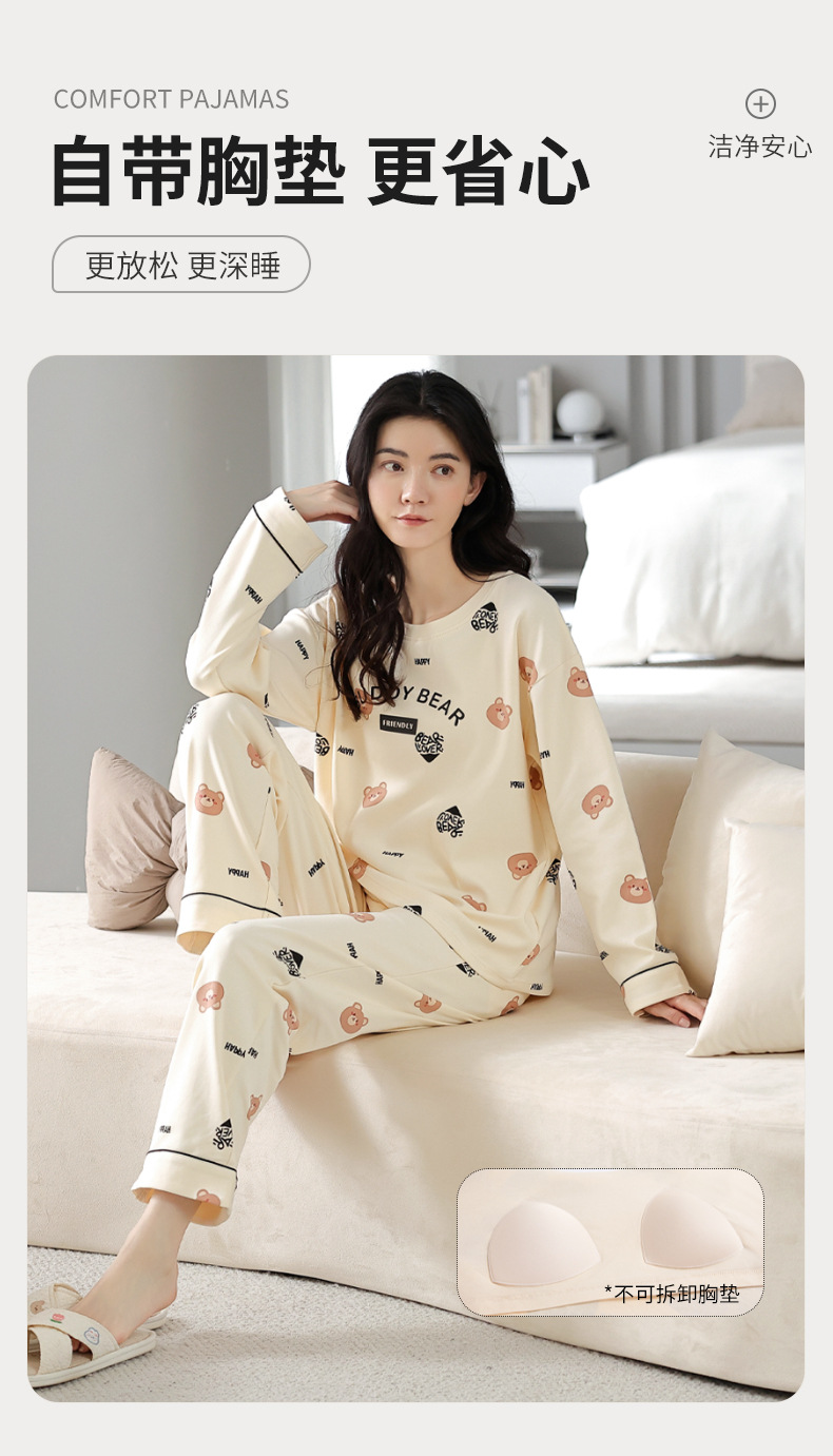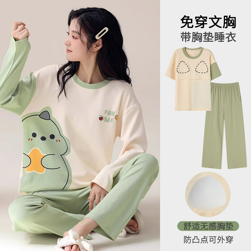 가슴 패드가 달린 잠옷 여성 봄과 가을 긴팔 바지, 학생을위한 겨울 의상 여성용 홈 의류 투피스 세트스토어 가기
