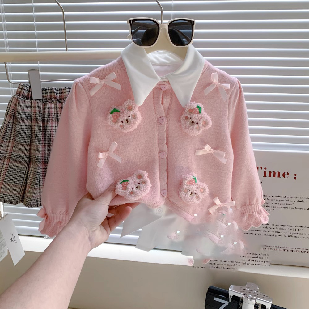 한국 아동복 2024 겨울 새로운 소녀 서양식 달콤한 3 차원 만화 니트 카디건스토어 가기