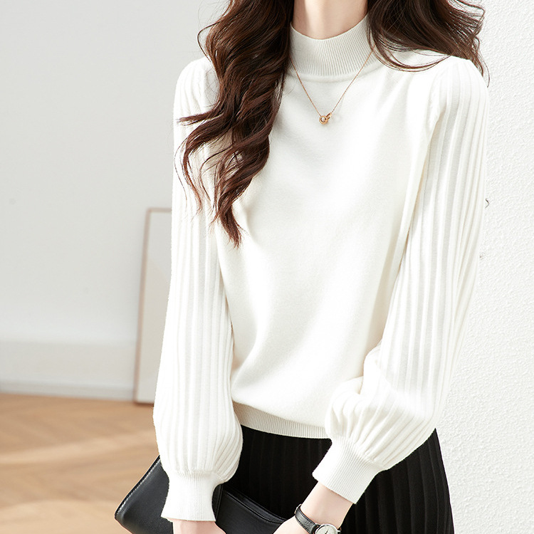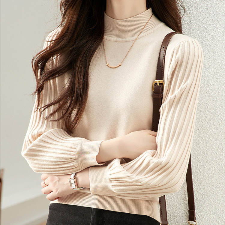 2025 하프 터틀넥 바닥 셔츠, 가벼운 럭셔리, 서양식, 가을 겨울 슬림하고 다재다능한 캐주얼 핏 스트립 긴팔 풀오버 가을 새로운 스타일스토어 가기