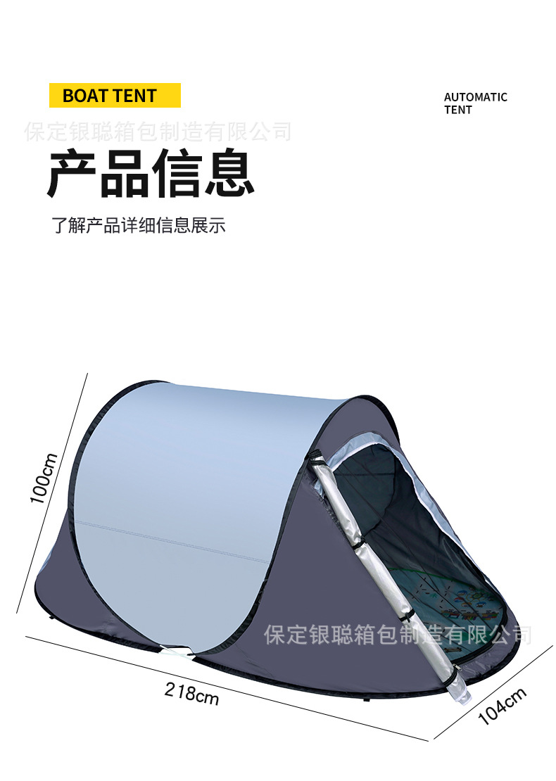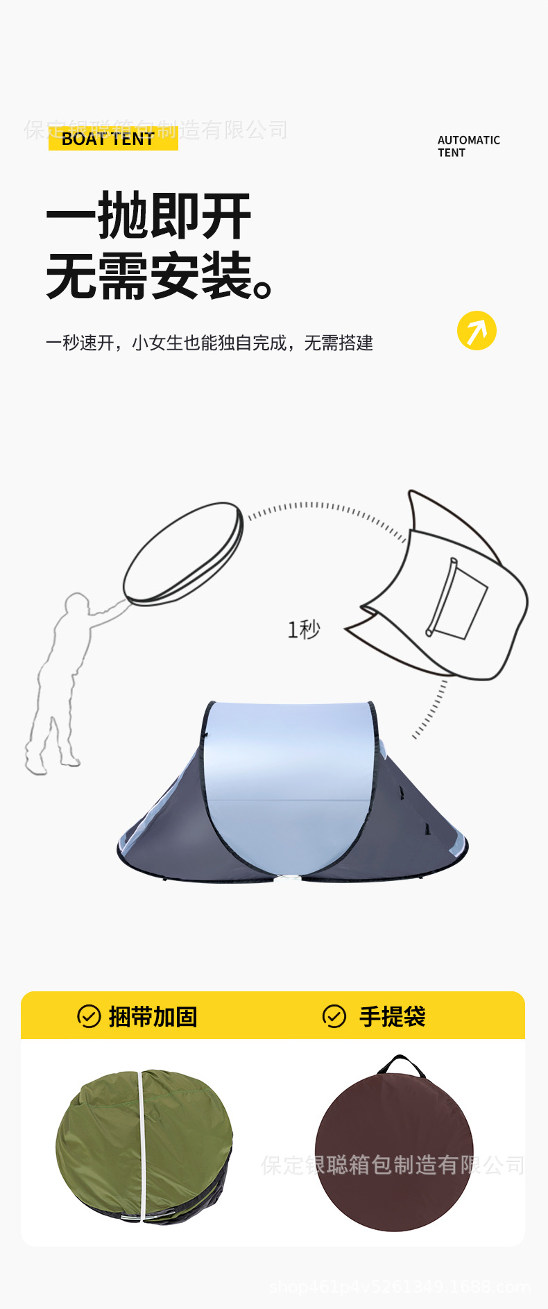 야외 캠핑 완전 자동 필드 빠른 오프닝 실내 보트 모양의 텐트 방풍 및 태양 방지 코팅 두꺼운 캠핑 손으로 던진 텐트