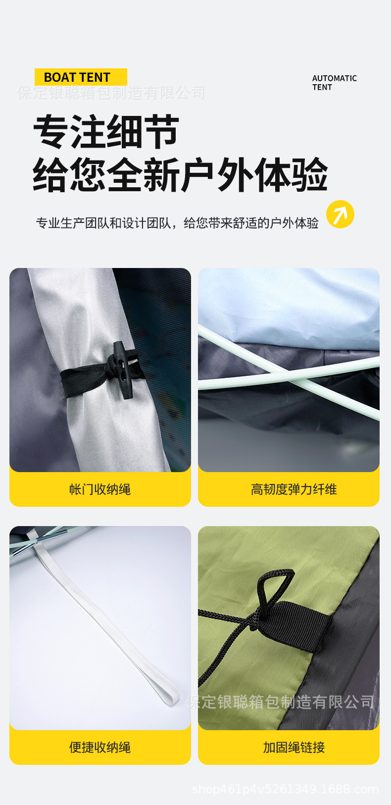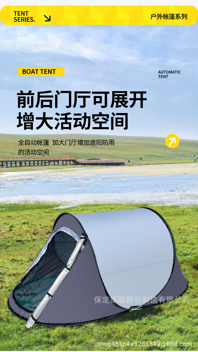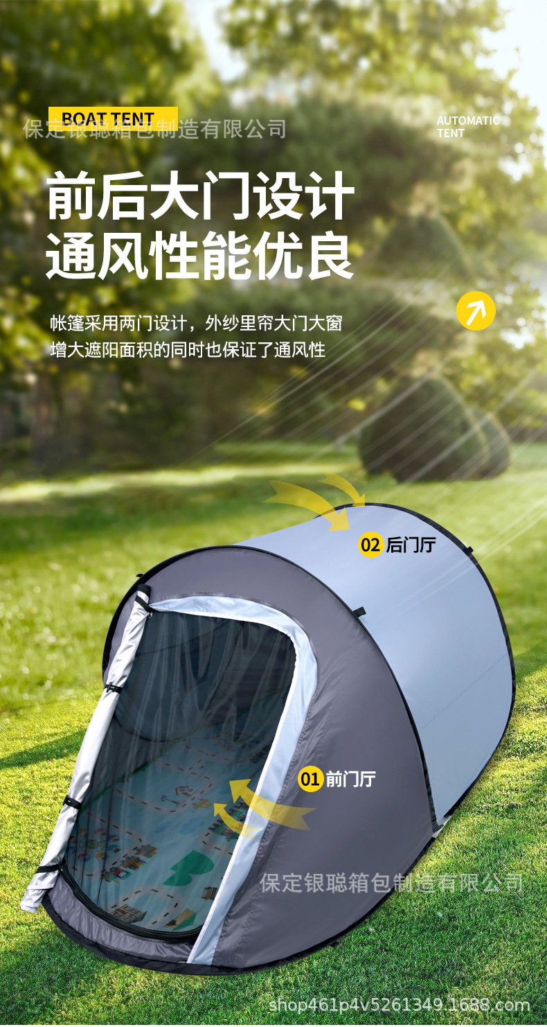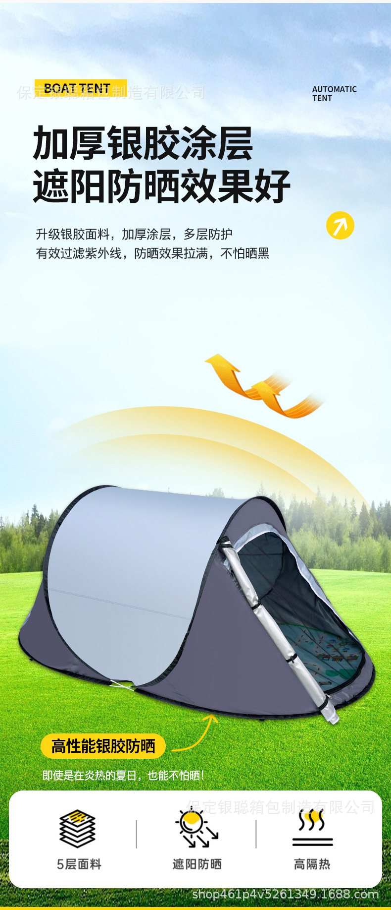 야외 캠핑 완전 자동 필드 빠른 오프닝 실내 보트 모양의 텐트 방풍 및 태양 방지 코팅 두꺼운 캠핑 손으로 던진 텐트스토어 가기