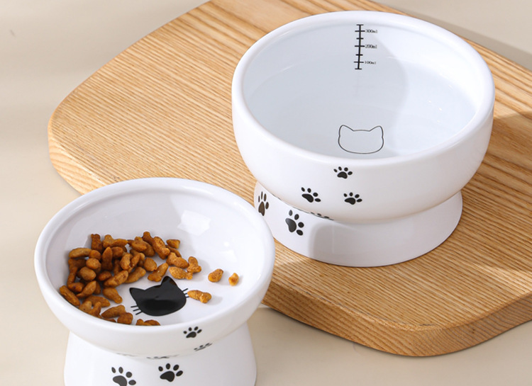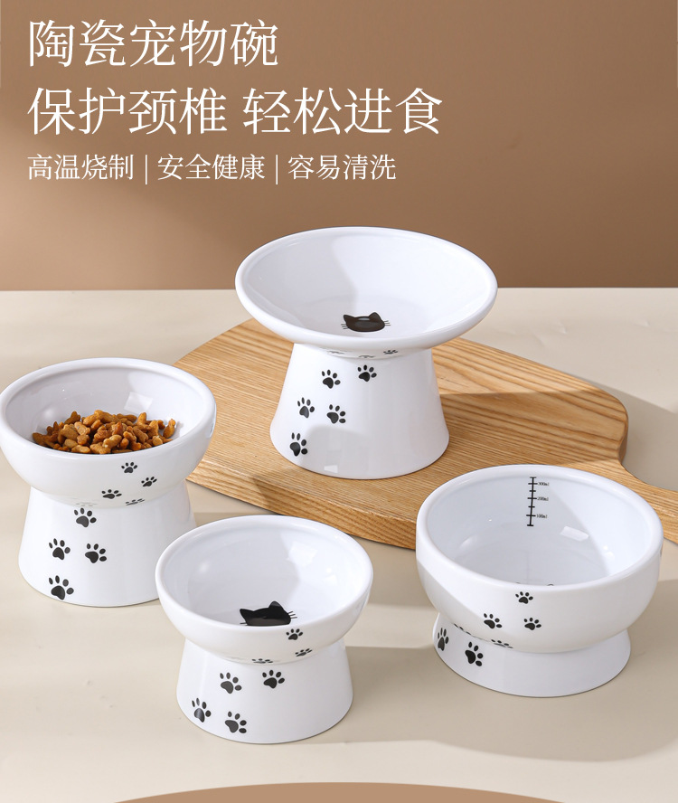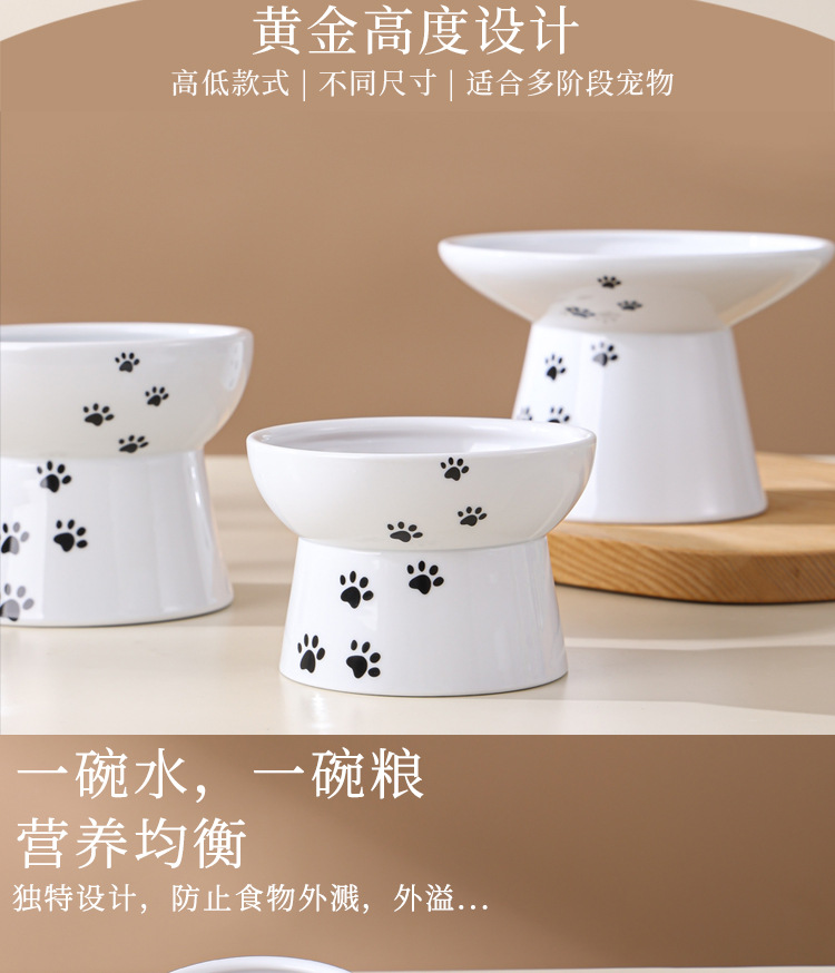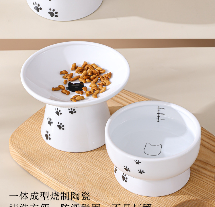 간식 통조림 고양이 분지 그릇 전복 방지 애완 동물 고양이 마시는 그릇 보호 자궁 경부 베르테브라 높은 발 세라믹 고양이 먹이 그릇