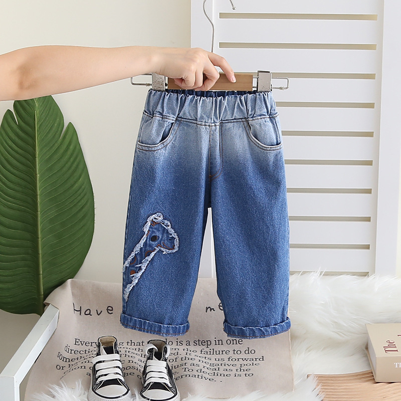 소년의 서양식 봄 바지 2024 새로운 어린이 봄과 가을 그라디언트 격자 무늬 청바지 캐주얼 아우터 착용